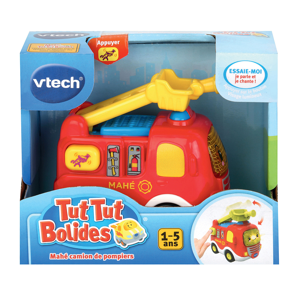 Tut Tut Bolides - Véhicules surprise - 1 - 5 ans En route pour des kilomètres d'aventure avec ces adorables véhicules parlants, lumineux et musicaux. Chacune possède sa propre personnalité. Un bouton lumineux en forme de visage rigolo déclenche 3 chansons, des phrases et des effets sonores réalistes. Magique ! En appuyant sur le bouton surprise, un élément du véhicule s'active (hélices de l'avion, capot de la berline, échelle du camion de pompiers...). Tous les véhicules sont compatibles avec les Zones Magiques des univers Tut Tut Animo et Tut Tut Bolides. 3 chansons, 6 mélodies et plein de sons amusants. Arrêt automatique. Différents modèles : - Mahé camion de pompiers x3 - Soline jolie berline x2 - Lucas roi du championnat x1 - Clément tracteur des champs x2 - Lilou dépanne-tout x1 - Théo super hélico x1 - Prudence SOS ambulance x1 - Hortense le bus des vacances x1 - Maëlys l'avion à hélice x1 - Mathéo quad super turbo x1 - Yanis Capitaine police x2 - Eden camion benne x1 - Maëlle super tractopelle x1 - Kevin roi du tuning x1 - Margot jolie loco x1 - Léon super béton x1 - Virgil pick-up agile x1 - Oscar super camping-car x1 - Gabin bolide tout-terrain x1 - Léonie, joli taxi x1 - Jimmy, livreur de colis x1 Boîte Try-me. Fonctionne avec 2 piles LR03/AAA fournies.