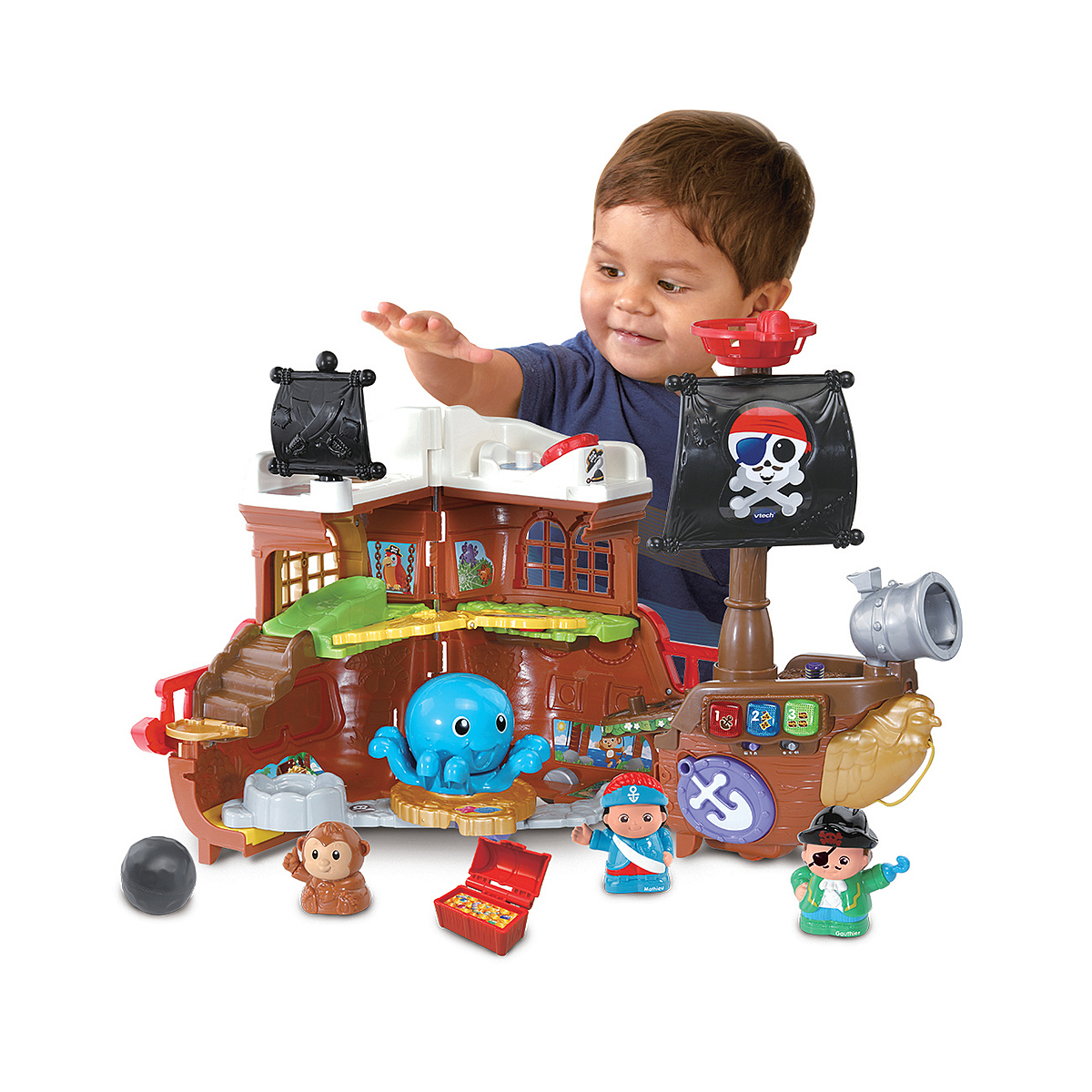 | Plus produit | Un bateau de pirate interactif géant qui se transforme en île aux pirates ! |
