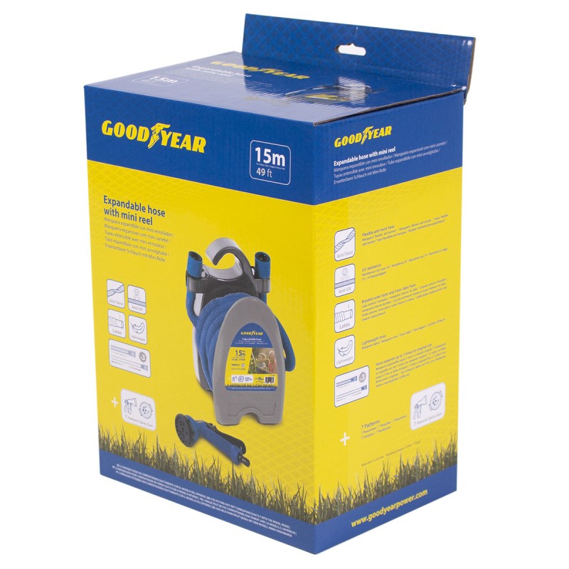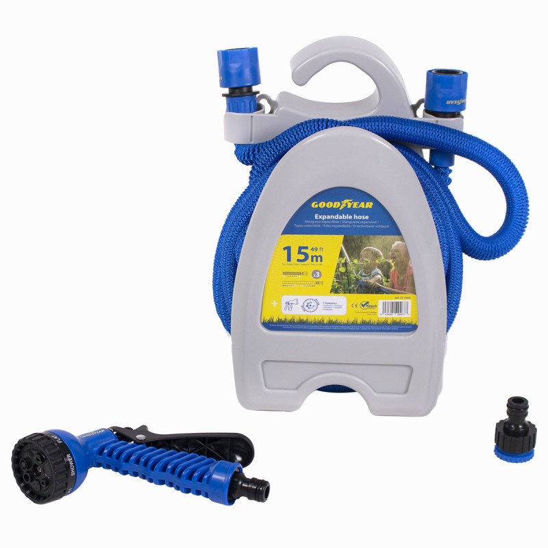 Tuyau d'arrosage extensible 15m 12 bar + Pistolet multi-jets 7 fonctions + raccords GOODYEAR