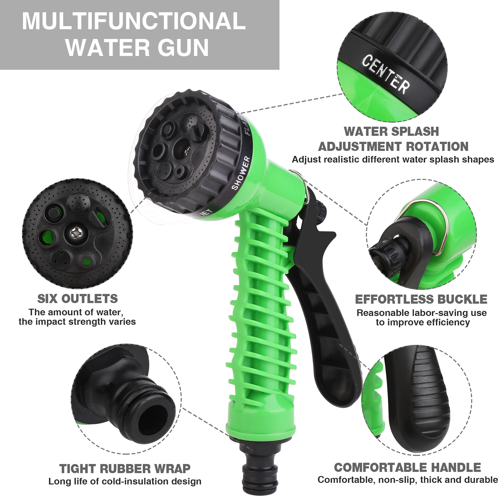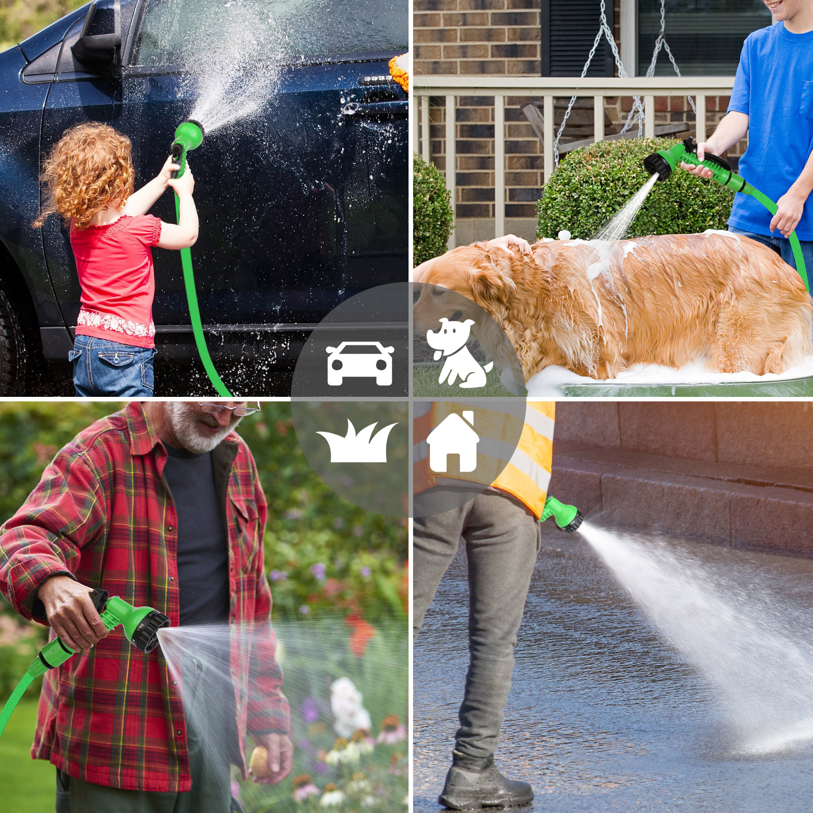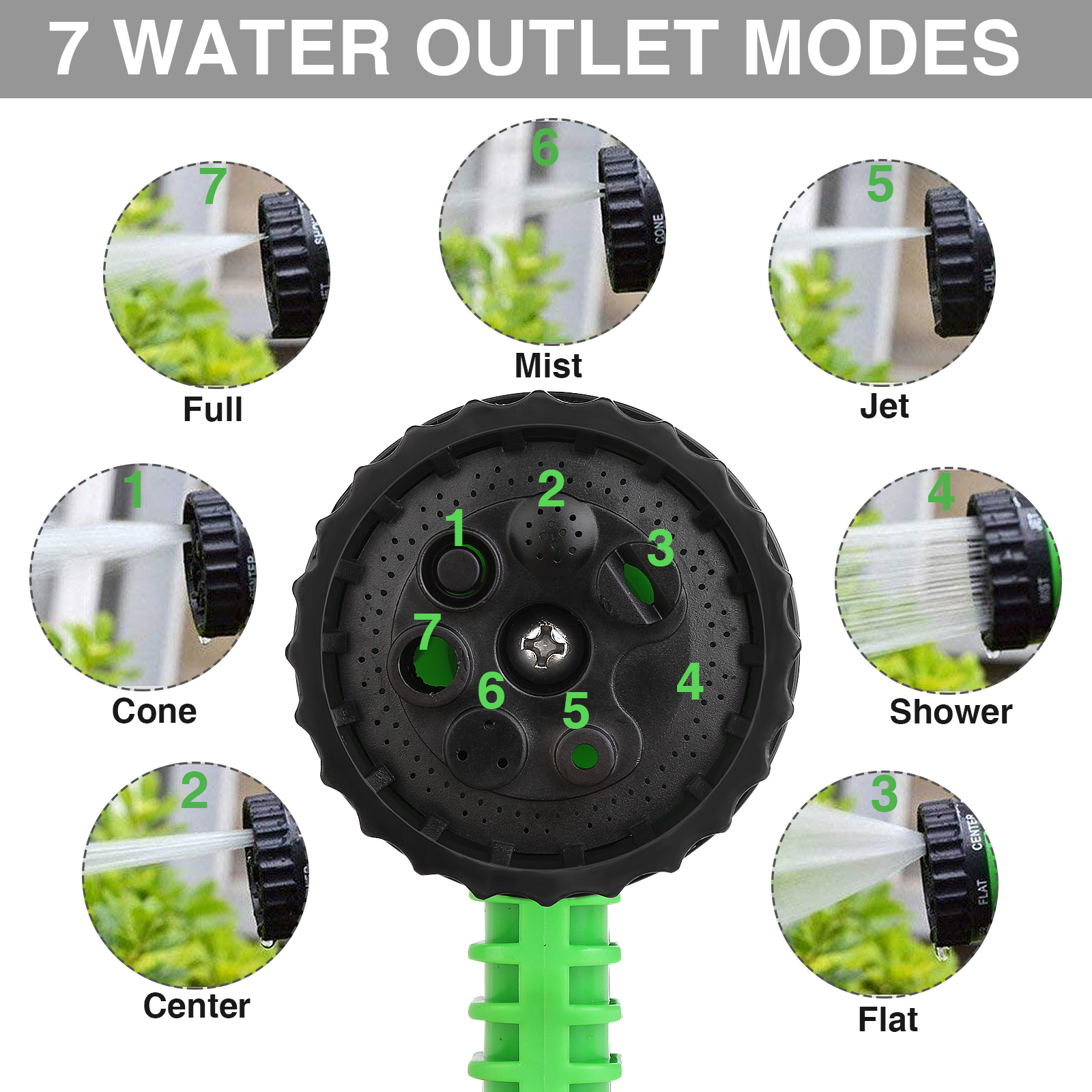 Tuyau extensible jusqu'à 22,5 mètres (utilisé). Se dilate automatiquement avec la pression de l'eau. Tripler sa taille d'origine. Arrosage avec 7 types différents de jet. Diamètre d'adaptation: 2,5 cm. Facile à utiliser. Compact et léger, facile à ranger. Résistant aux coups et aux rayures. Poignée ergonomique. Matériau du tuyau: plastique ABS durable. Idéal pour diverses utilisations d'arrosage et de nettoyage, telles que le jardinage, le lavage des voitures, le nettoyage des logements, etc.