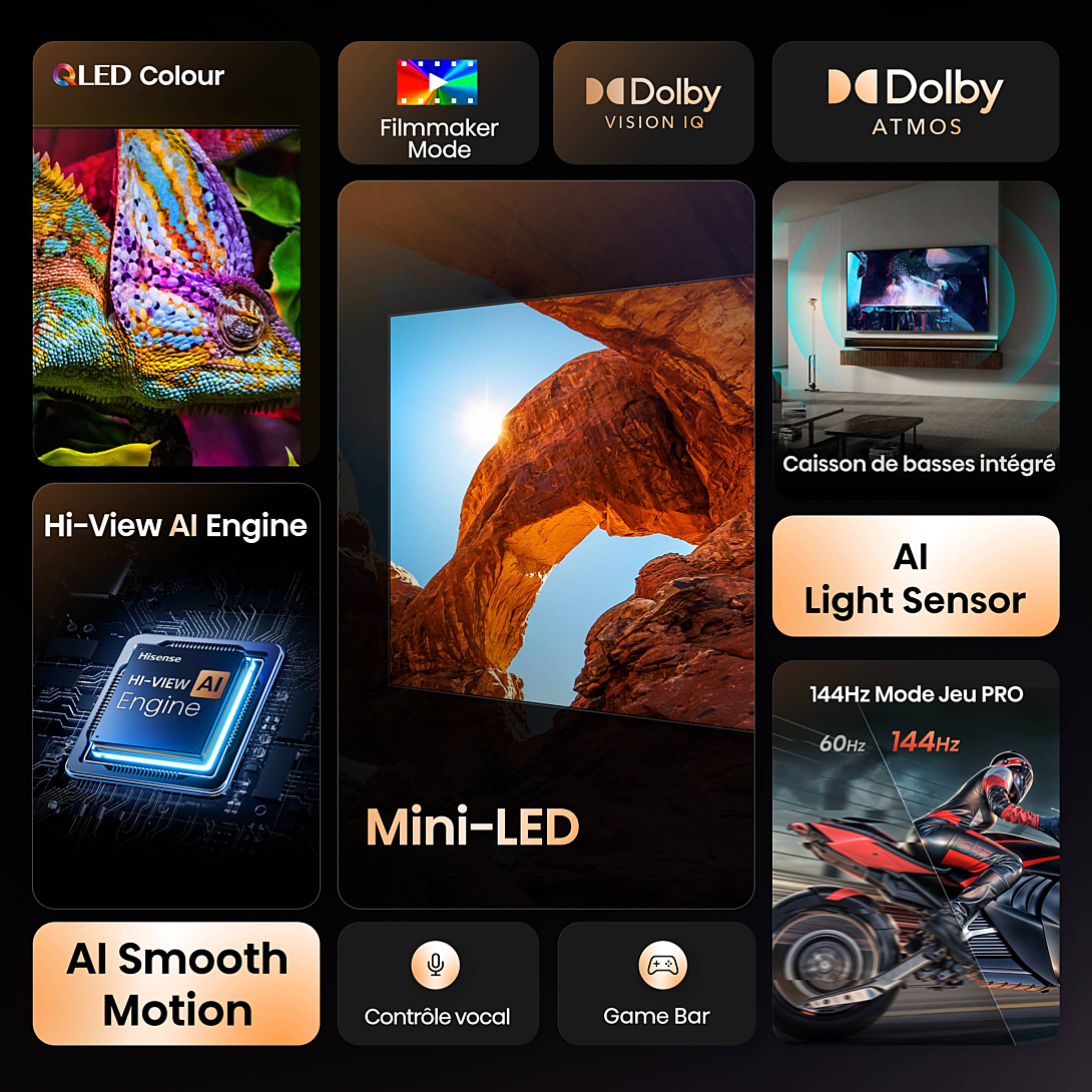 | Libellé | TV HISENSE MINILED QLED 144Hz SMART 4K 55U7Q |