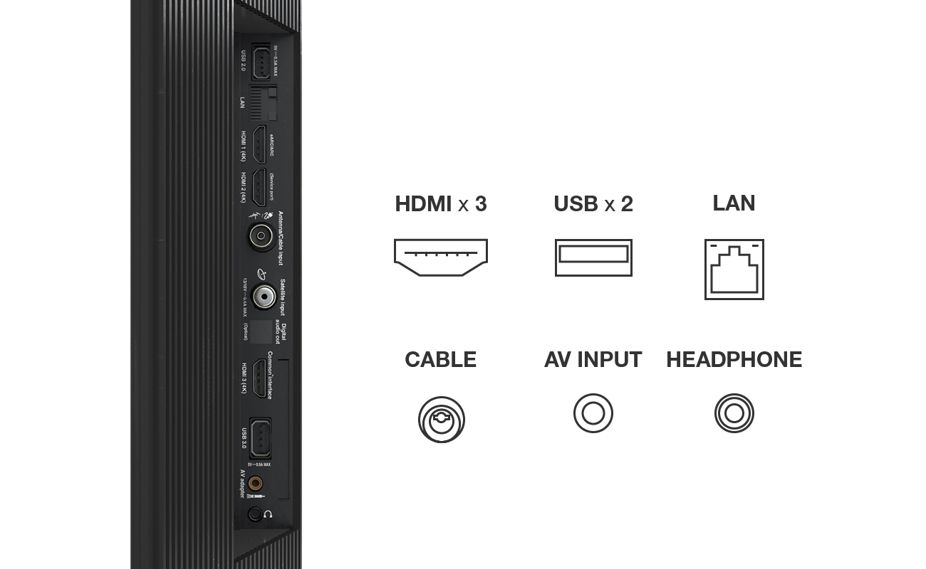 | Caractéristiques du tuner | Format du système de signal numérique:DVB-C;DVB-S2;DVB-T2;Analogique et numérique;Système de format du signal analogique:NTSC;PAL;SECAM |