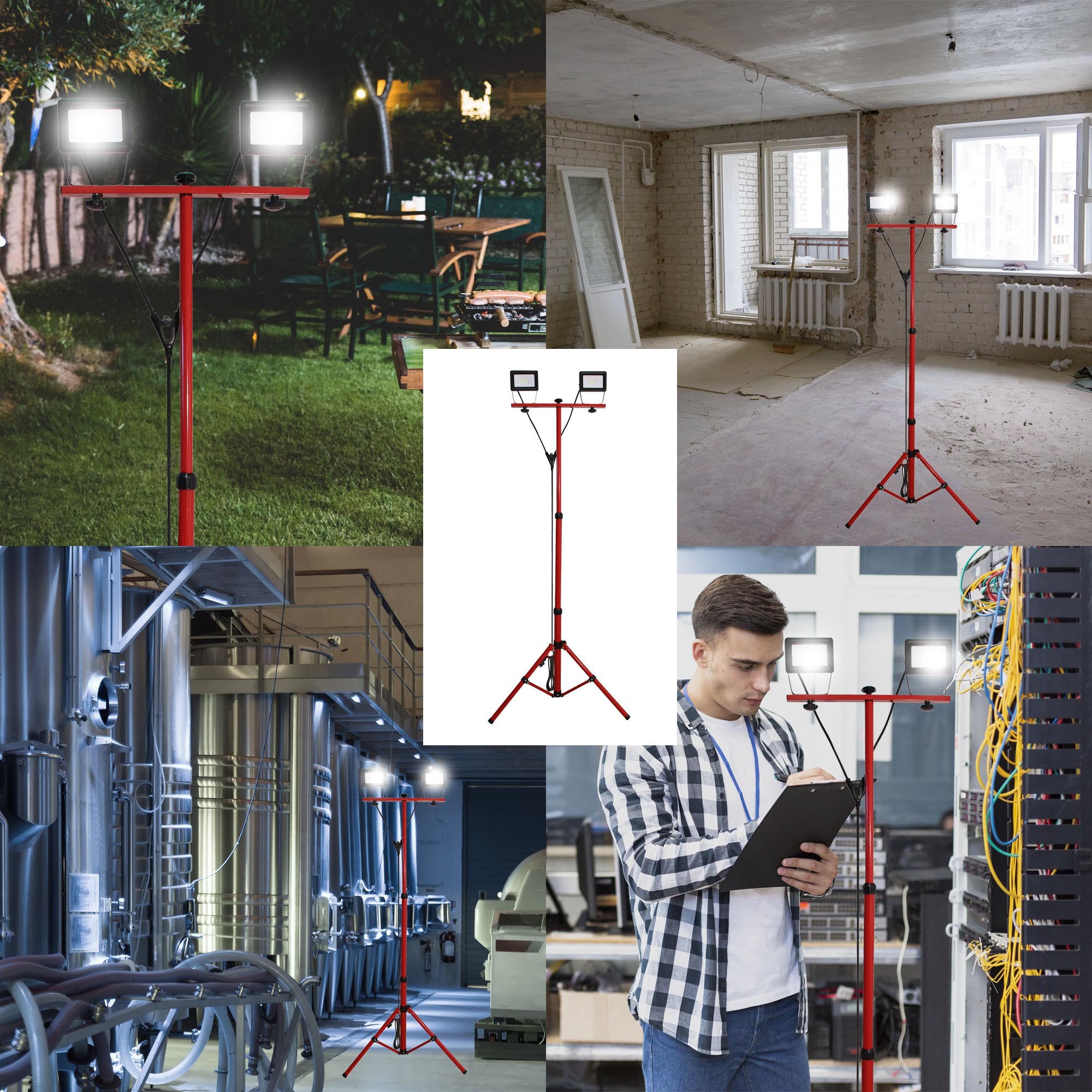 Puissance : le spot LED 2x20W/3200 lumens à économie d'énergie éclaire le chantier avec une lumière blanche froide (6500 K) et rend les conditions de travail optimales même en extérieur (IP65). Durée de vie moyenne de 25 000 heures, classe énergétique A+ avec faible consommation. Pratique partout : la lampe portable est utile pour les travaux en extérieur, le chantier, l'atelier, le jardin, le camping ou le garage. Le phare est également imperméable et se prête aussi bien à l'intérieur qu'à l'extérieur. Facile à utiliser : trépied en métal télescopique et facilement orientable. Base large pour une meilleure stabilité. Extension maximale : 176 cm. La grille de protection est une garantie de longévité du produit sur les chantiers. Simple : la lampe de chantier est munie d'un long câble pour l'alimentation de 3 mètres en néoprène (H05RN-F 3G1.0MM2), pouvant être branchée sur n'importe quelle prise européenne (prise Schuko). Faisceau de lumière : 100° (floodlight).