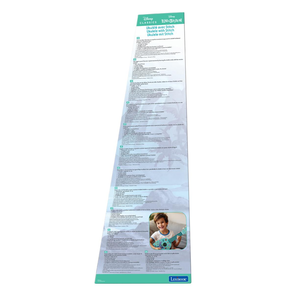 * Devenez un superbe musicien en apprenant avec le ukulélé Stitch ! * Les cordes en nylon, plus souples que les cordes de guitare, n'abimeront pas les mains des enfants ! * Des sonorités exotiques pour exercer l'oreille des enfants ! * Accordable, le ukulélé aura la meilleure intonation ! * Plus petit qu'une guitare, il sera plus confortable pour l'enfant d'apprendre ! * Ukulele en bois d’environ 53 cm – 21’’