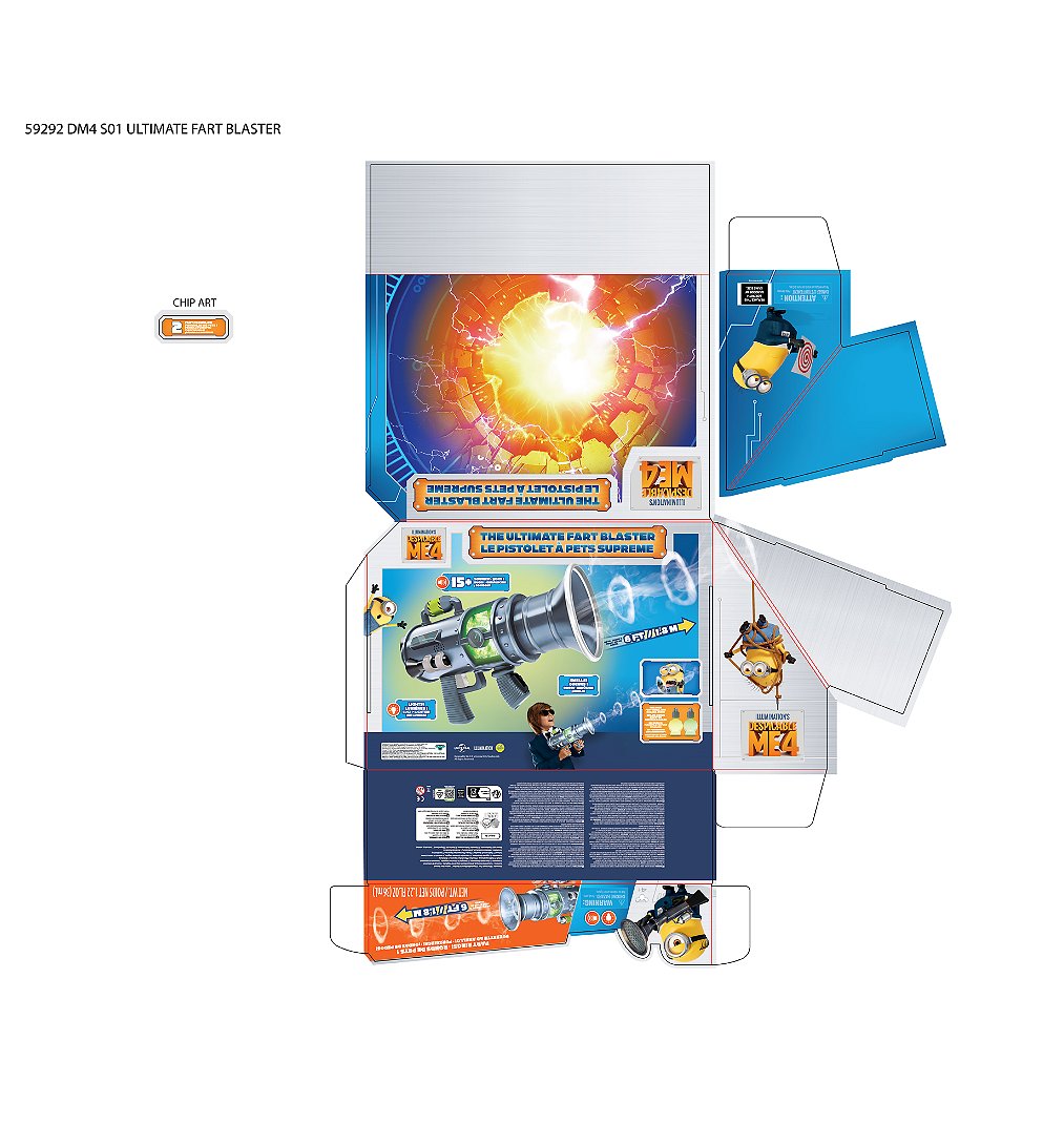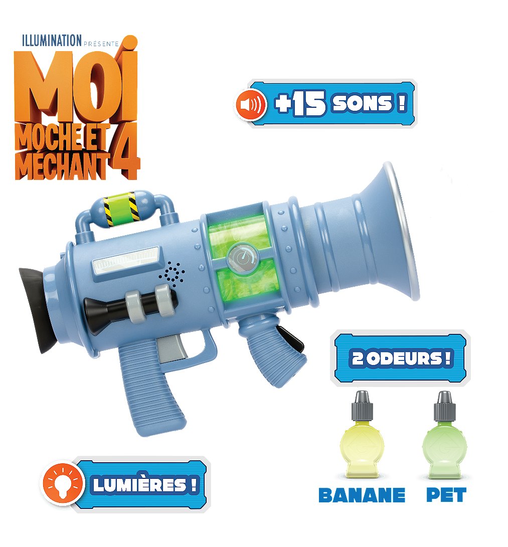Retrouve le célèbre Blaster du film Moi Moche et Méchant 4 en version électronique avec le vrai bruit de prouts et de la vraie fumée !