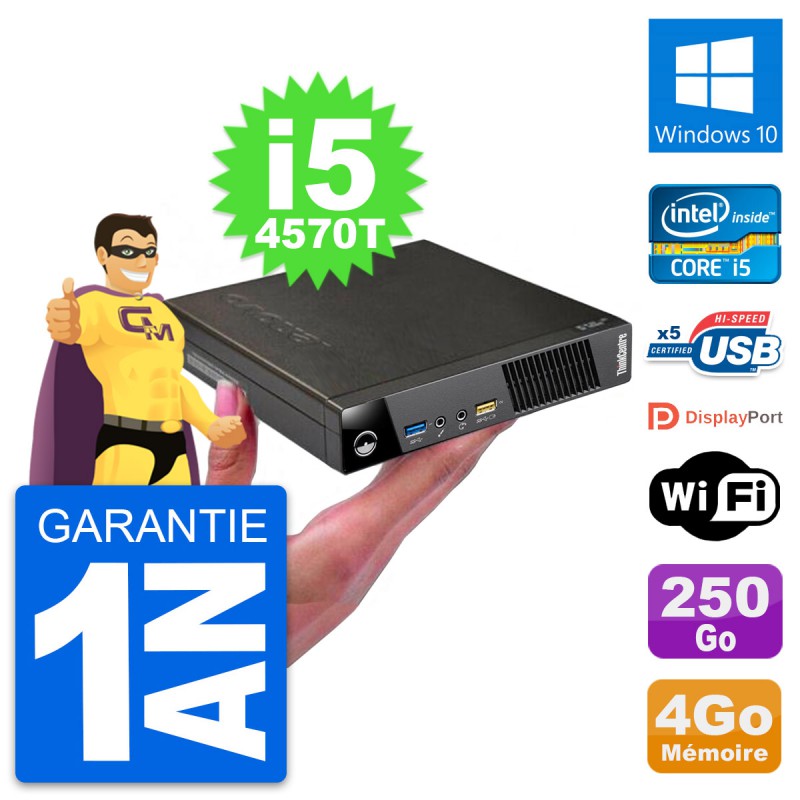 Ultra Mini PC Lenovo M73 Tiny USFF i5-4570T RAM 4Go Disque 250Go Windows 10 Wifi