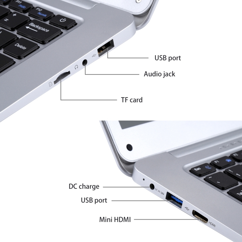 Le fonctionnement de l'Ultrabook Windows 10 est garanti par sa batterie de 9000 mAh. Cette batterie possède une grande autonomie. Son interface comprend un emplacement pour une carte TF, un pour des écouteurs, 2 pour des appareils à USB, un pour un appareil à mini HDMI et enfin une entrée DC.