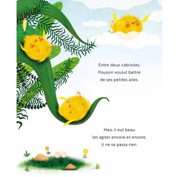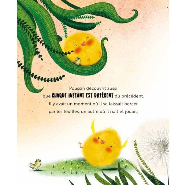 Petit poussin fait ses premiers pas dans le monde qui regorge de créatures et d'expériences à découvrir. Mais son enthousiasme pour la nouveauté s'amenuise face à la solitude… Finalement, petit Poussin comprend que le bonheur n'existe que s'il est partagé. Une adorable histoire qui fleure bon la famille et la joie d'être ensemble.