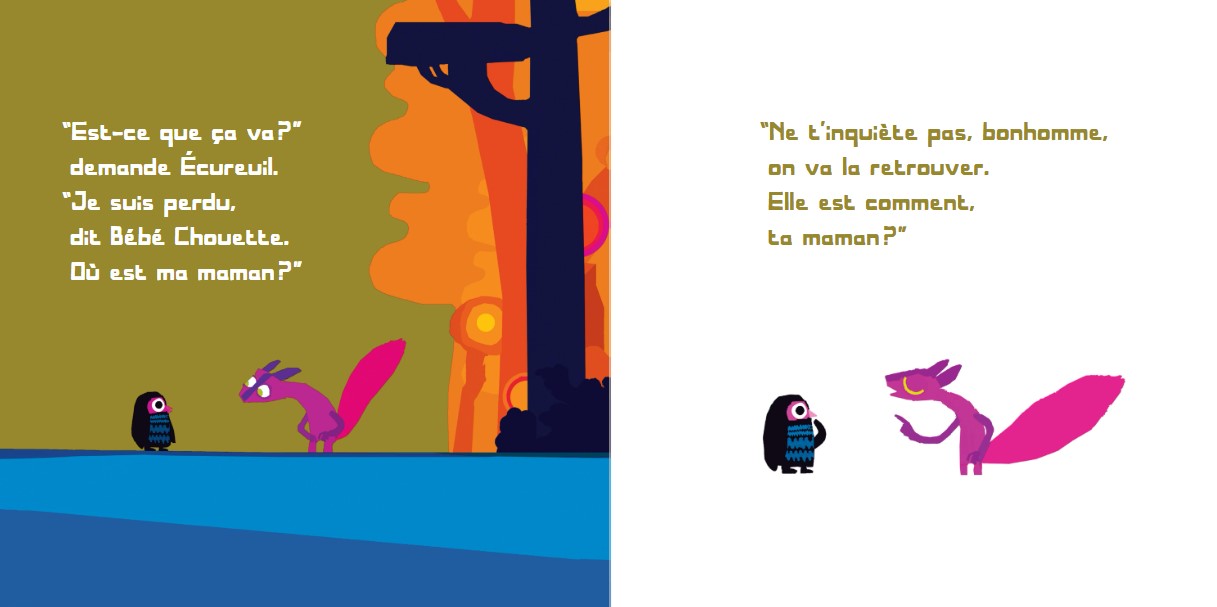 Bébé Hibou dort tranquillement à côté de sa mère dans un nid haut perché quand soudain il bascule hors du nid. Il se retrouve tout en bas, sur le sol, seul et perdu. Mais où est passée sa maman?