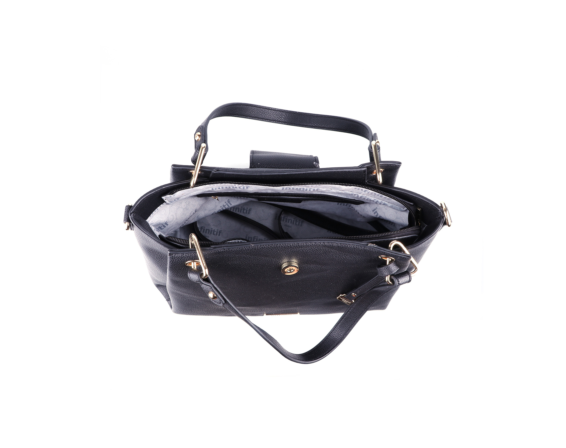 Ce sac NOIRON polyvalent combine style et fonctionnalité. Il est doté d'une bandoulière réglable et amovible, de deux anses pour un port personnalisé, et d'une fermeture à la fois zippée et par bouton aimanté pour plus de sécurité et de praticité. Les renforts inférieurs ajoutent une durabilité supplémentaire, tandis que les trois poches intérieures, incluant une poche zippée, vous aident à garder vos essentiels organisés avec élégance