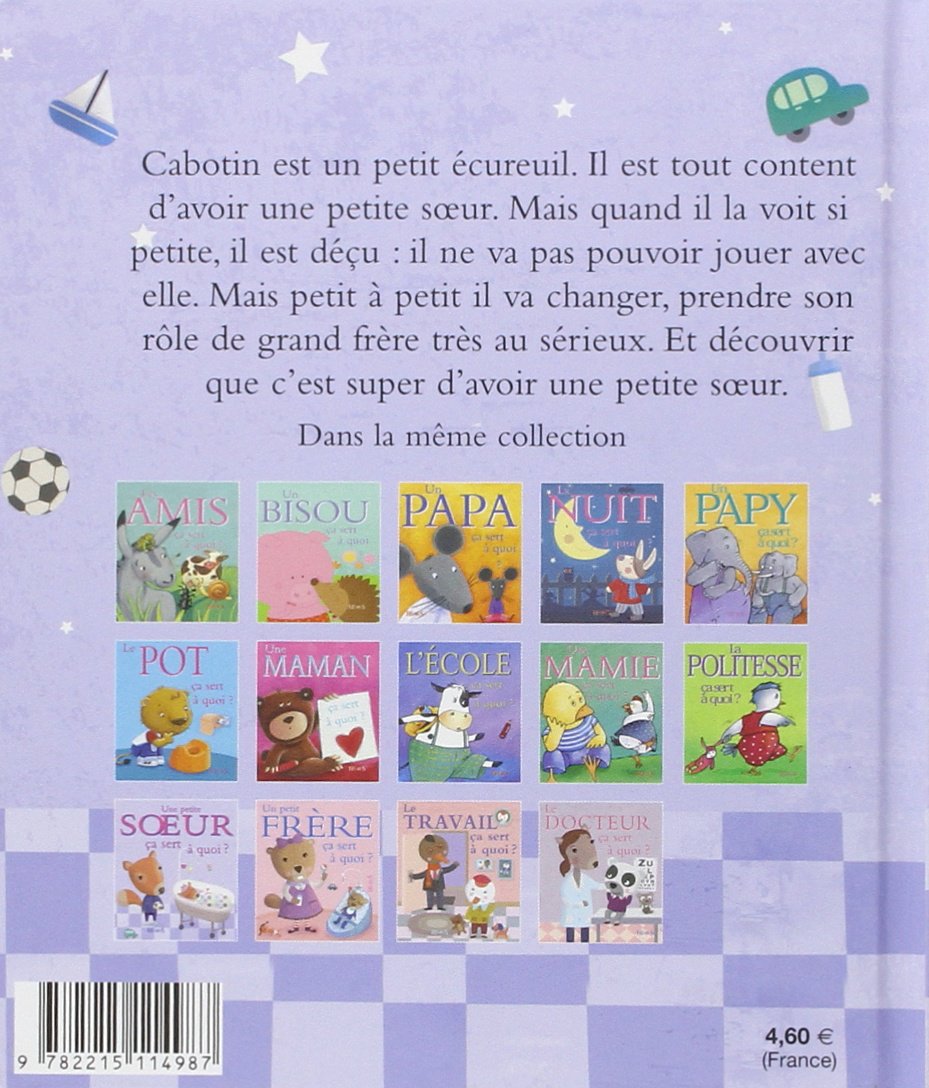 Cabotin est un petit écureuil. Il est tout content d'avoir une petit soeur. Mais quand il la voit si petite, il est déçu, il ne va pas pouvoir jouer avec elle. Mais petit à petit il va changer, prendre son rôle de grand frère très au sérieux. Et découvrir que c'est super d'avoir une petite soeur.
