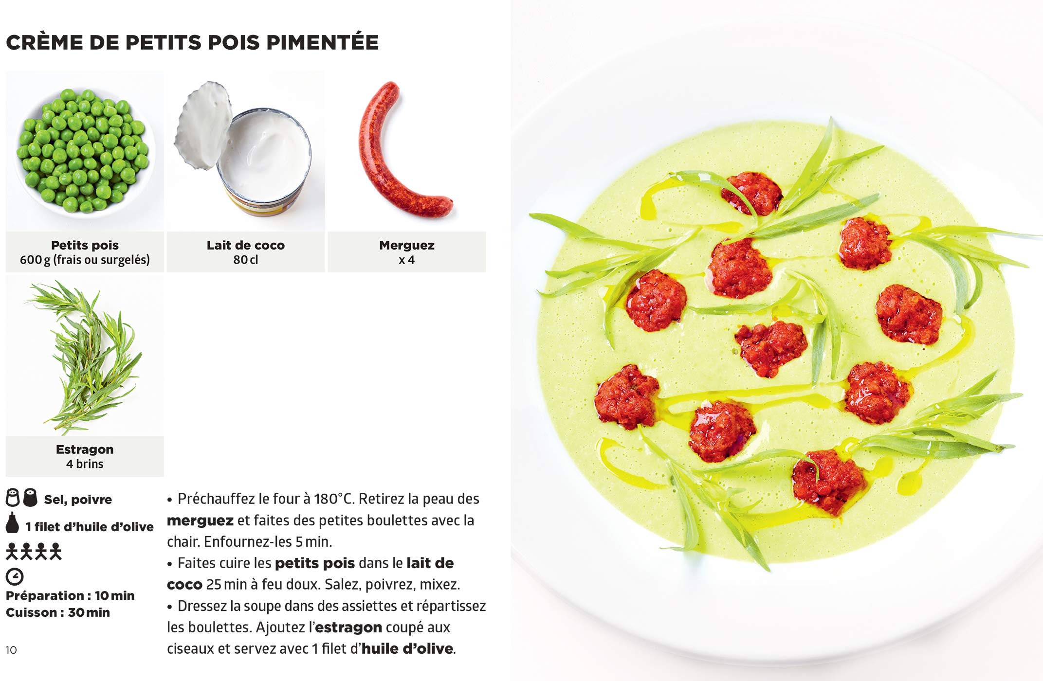 Cent recettes de soupes à réaliser rapidement, avec de deux à six ingrédients.