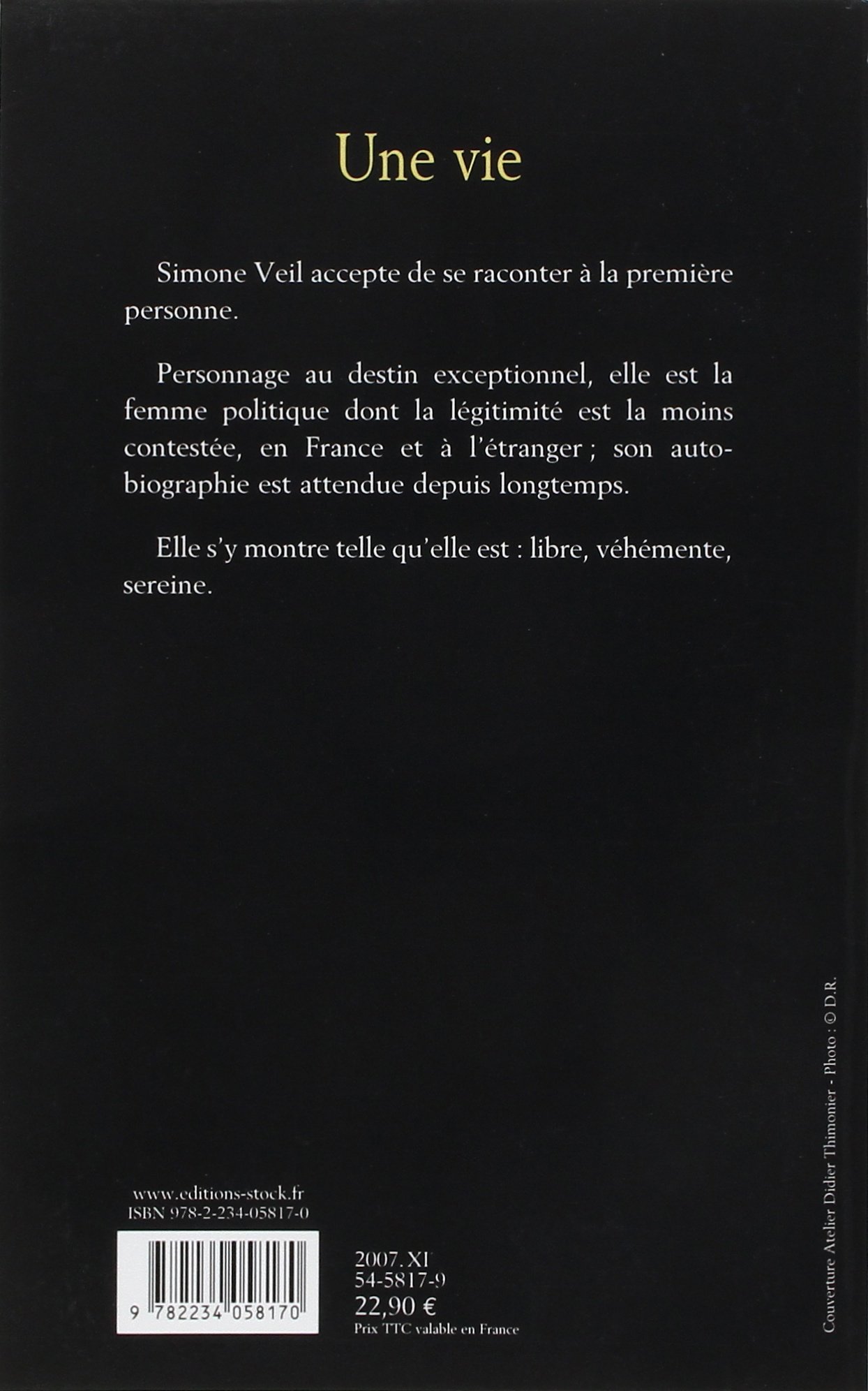 Personnage au destin exceptionnel, elle est la femme politique dont la légitimité est la moins contestée, en France et à l'étranger ; son autobiographie est attendue depuis longtemps.