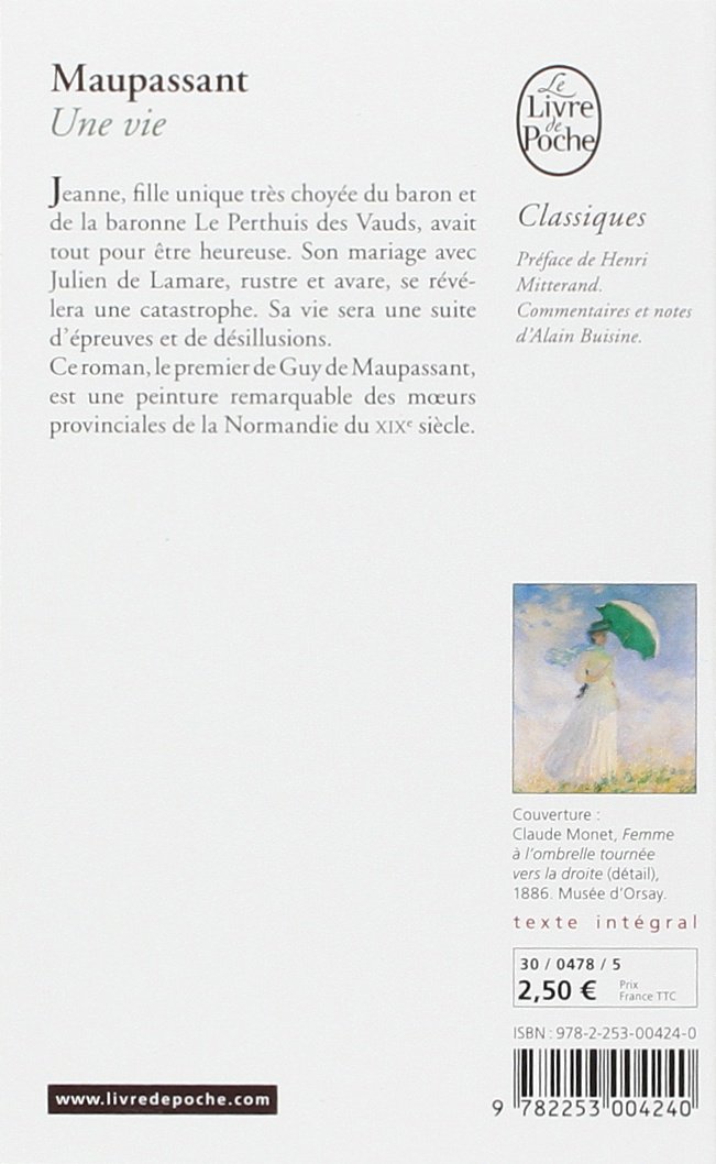 Jeanne, fille unique très choyée du baron et de la baronne Le Perthuis des Vauds, avait tout pour être heureuse. Son mariage avec Julien de Lamare, rustre et avare, se révélera une catastrophe. Sa vie sera une suite d'épreuves et de désillusions.