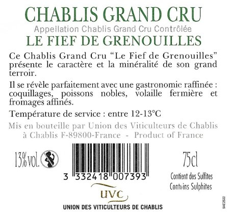 | Libellé | Union Des Viticulteurs De Chablis , 2019 - Chablis Grand Cru AOP - Blanc Sec - 75 cl |