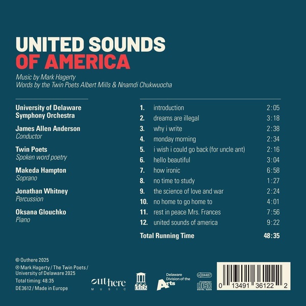| Artiste Principal | Mark Hagerty, Twin Poets, University Of Delaware Symphony Orchestra, James Allen Anderson, Makeda Hampton, Jonathan Whitney, Oksana Glouchko |