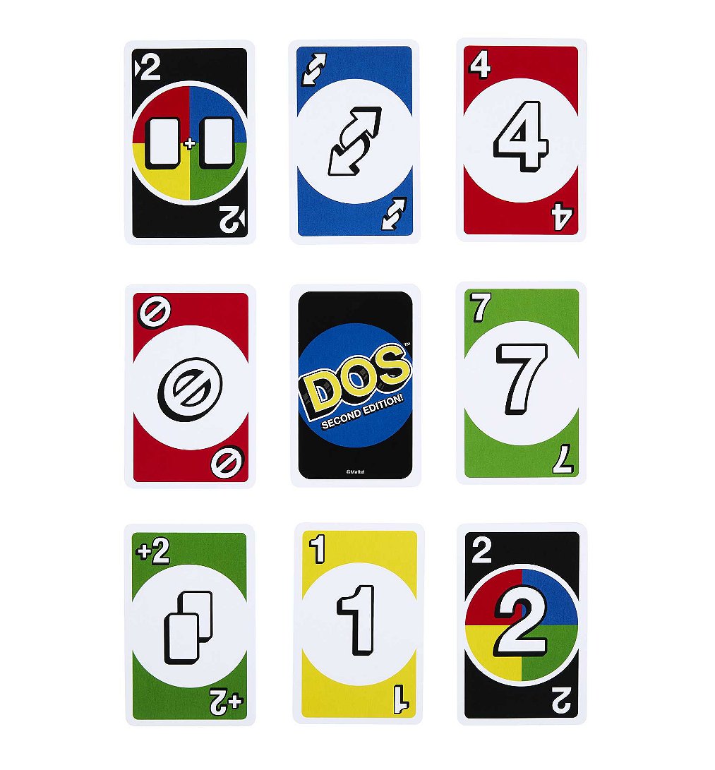 Nouvelle version du DOS, avec encore plus de cartes actions! Interdiction de jouer, changement de ce sens, +2 et obligation de poser deux cartes!