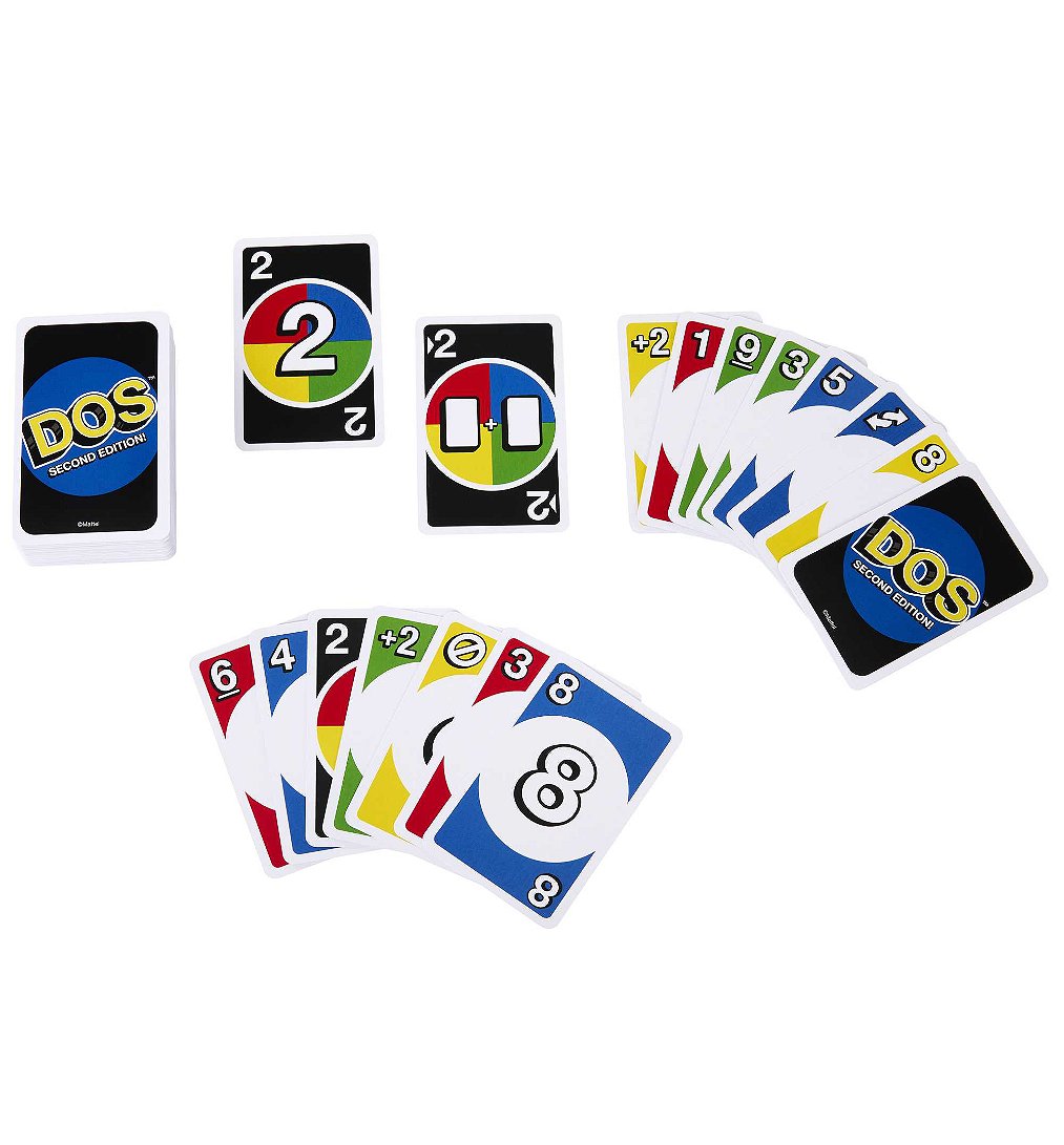 | Plus produit | Le jeu de cartes DOS Deuxième Édition propose de nouvelles cartes et de nouvelles règles pour encore plus de rebondissements lors des soirées jeux !\nPour se débarrasser de leurs cartes, les joueurs peuvent les poser sur lune des DEUX piles de défausse, ou même sur les deux !\nToutes les cartes « 2 » sont des cartes « Joker DOS », ce qui signifie que les joueurs choisissent la couleur de la carte.\nLa carte « Joker Jouer 2 » oblige le joueur suivant à poser au moins deux cartes lors de son tour, et sil ne peut pas, il devra en piocher deux.\nSi un joueur pose deux cartes Action lors de son tour, le joueur suivant devra réaliser CHACUNE des actions indiquées !\nLorsquils nont plus que DEUX cartes, les joueurs doivent crier « DOS ». Avec la deuxième édition du jeu DOS, il ny a pas de perdants ! |