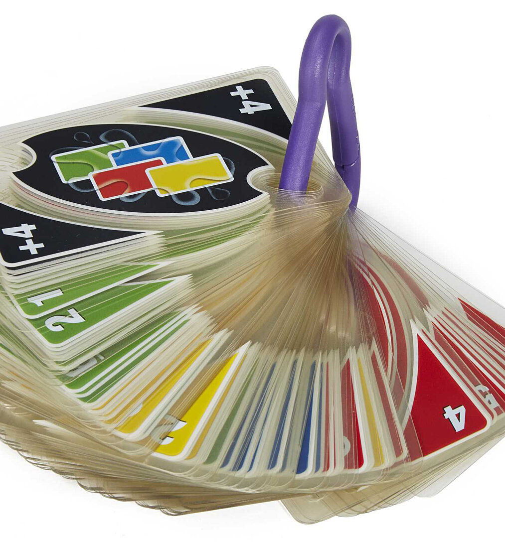 | Plus produit | Ce jeu UNO est particulièrement résistant et s'emmène partout ! Les cartes en plastique sont imperméables ! Le jeu comprend également un mousqueton qu |