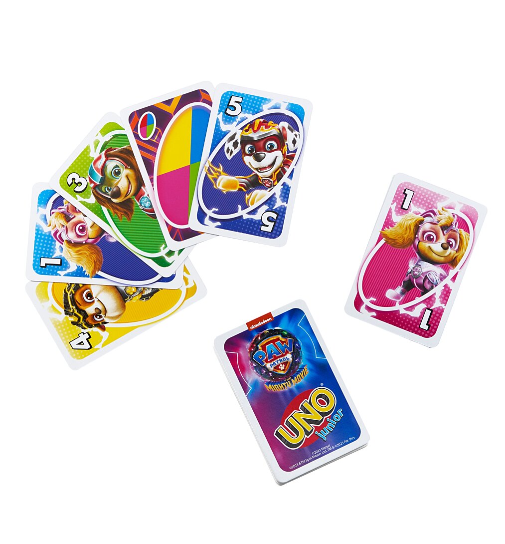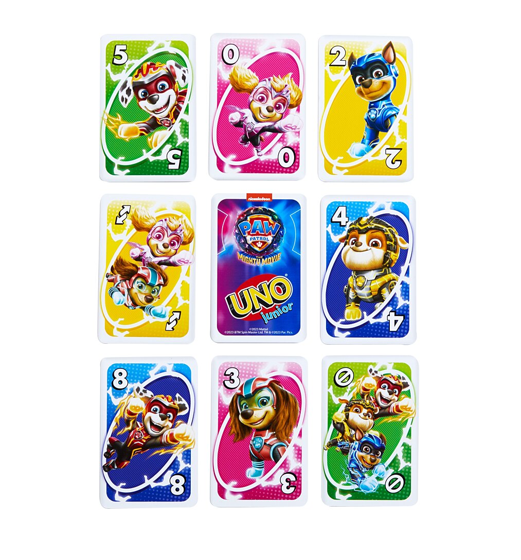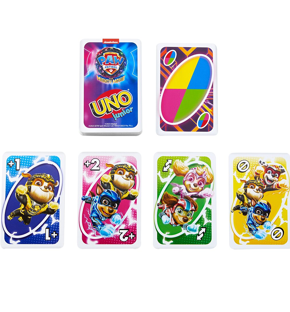 | Plus produit | Les fans du UNO® Junior vont adorer les illustrations inspirées des personnages du film Pat’ Patrouille : La Super Patrouille. Le déroulement du jeu e |