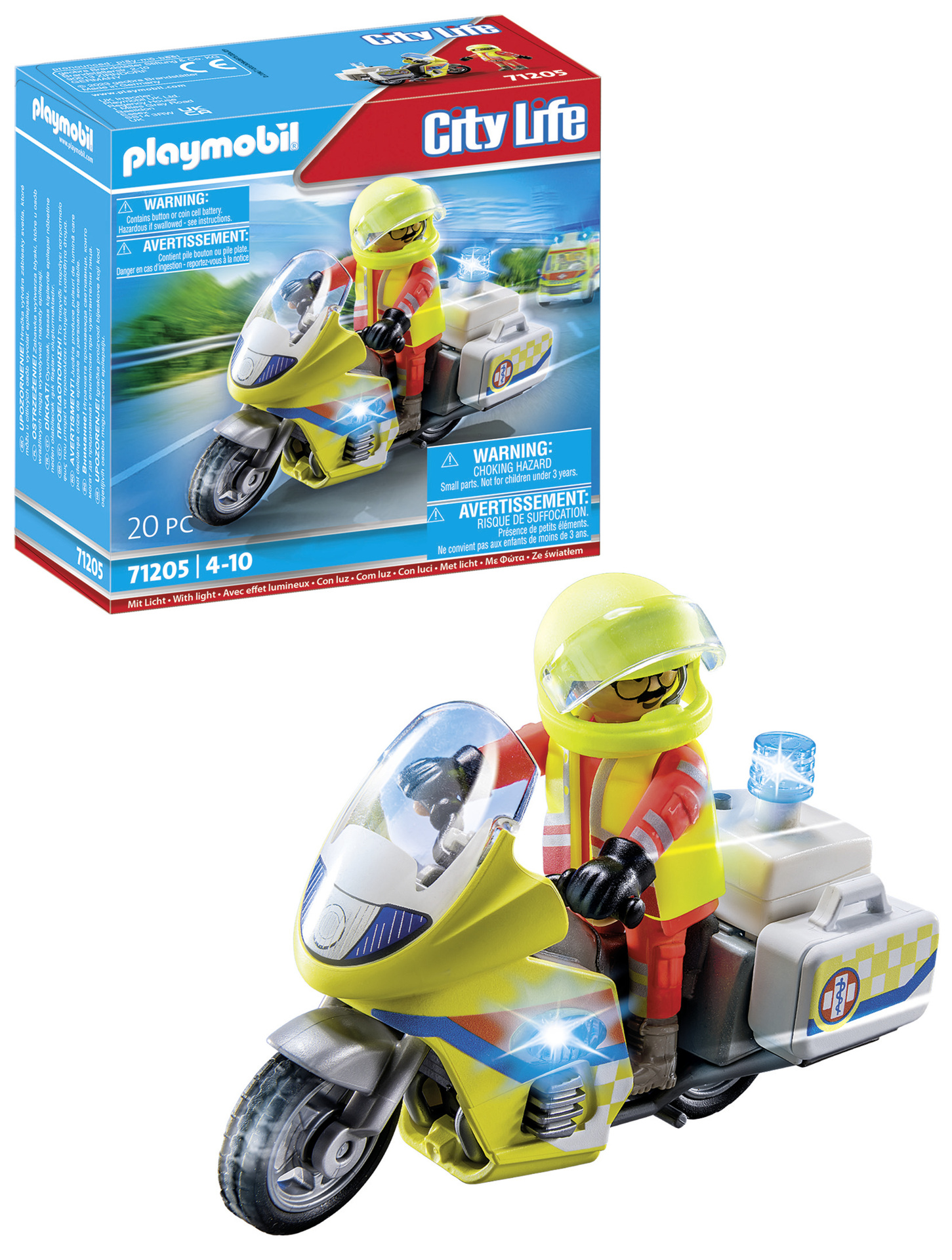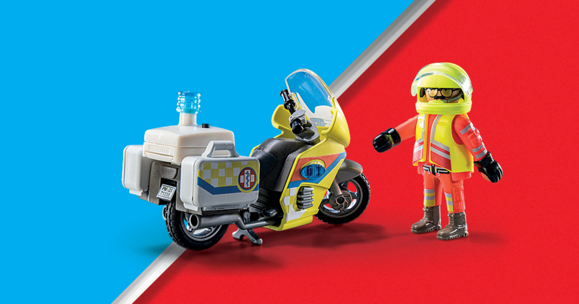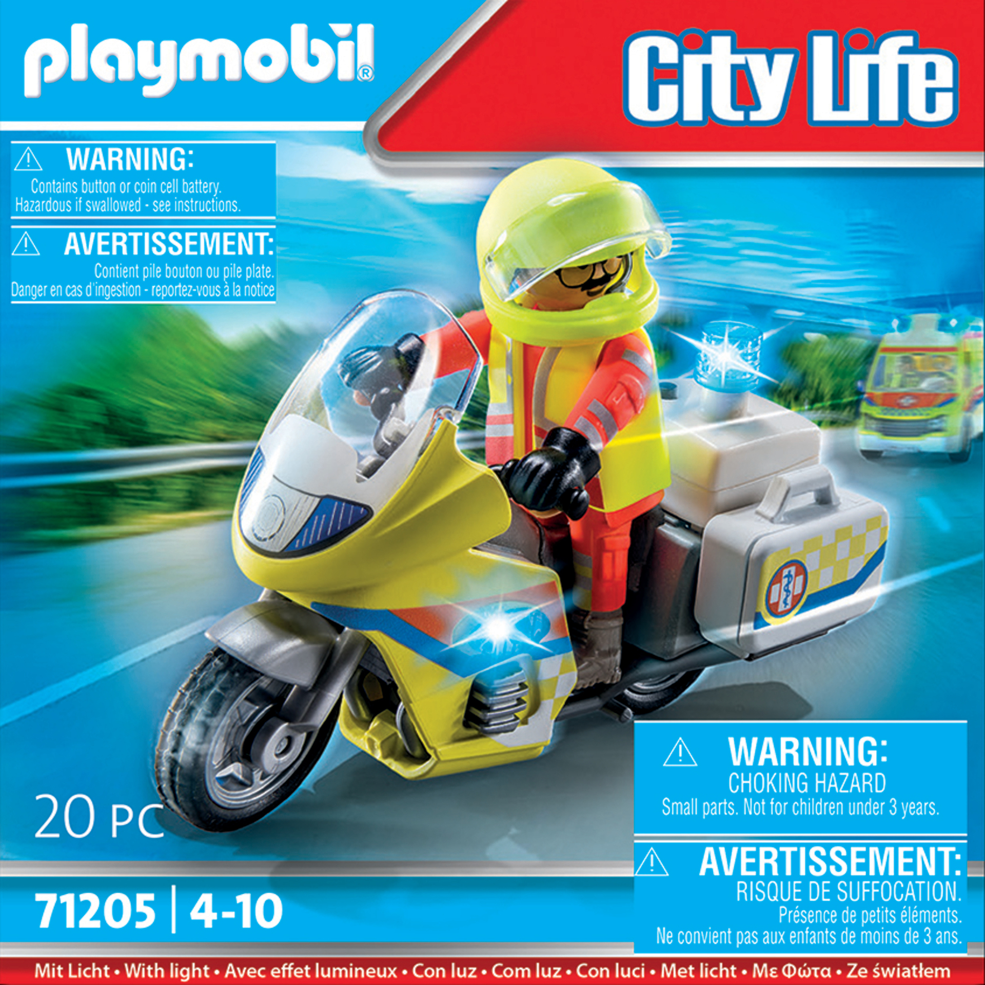 | Plus produit | La moto du secouriste dispose d\'effets lumineux à l\'avant et à l\'arrière du véhicule\nNécessite 3 piles type LR48 fournies\nUn secouriste avec équipements de moto |