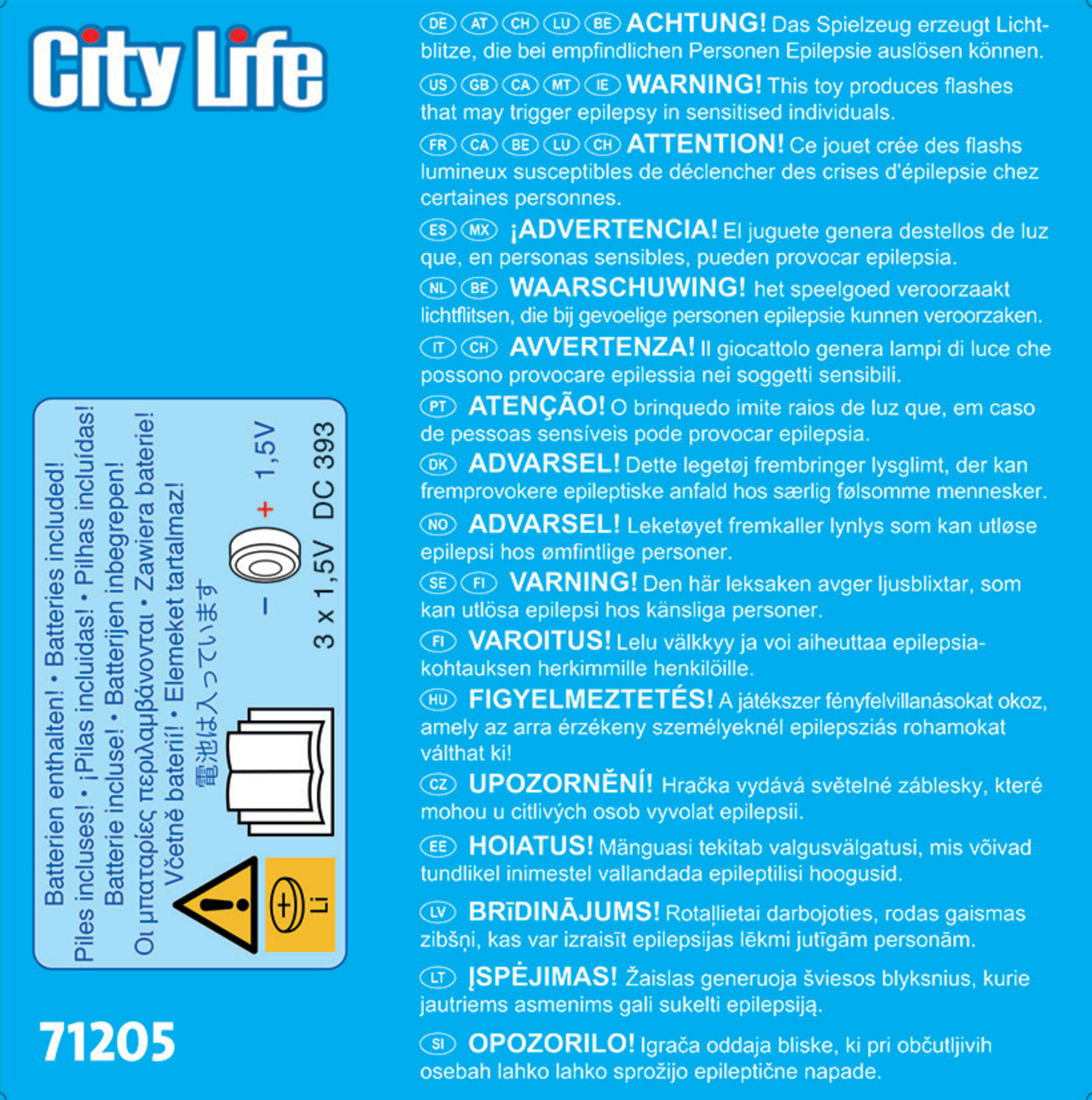 | Avertissements | AVERTISSEMENT: RISQUE DE SUFFOCATION. Présence de petits éléments. Ne convient pas aux enfants de moins de 3 ans. ATTENTION! Ce jouet crée des flashs lumineux susceptibles de déclencher des crises d’épilepsie chez certaines personnes. AVERTISSEMENT: Contient pile bouton ou pile plate. Danger en cas d’ingestion-reportez-vous à la notice. AVERTISSEMENT: RISQUE DE SUFFOCATION. Présence de petits éléments. AVERTISSEMENT: Contient pile bouton ou pile plate. Danger en cas d’ingestion. |