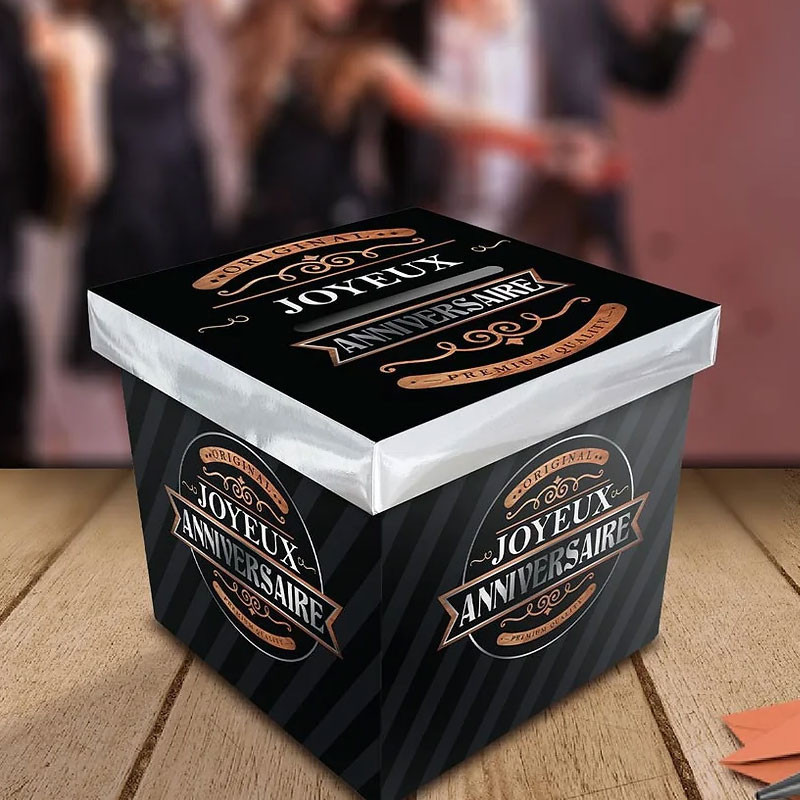 Urne en carton - Noir - Anniversaire - A monter - 20x20x20cm - Cagnotte