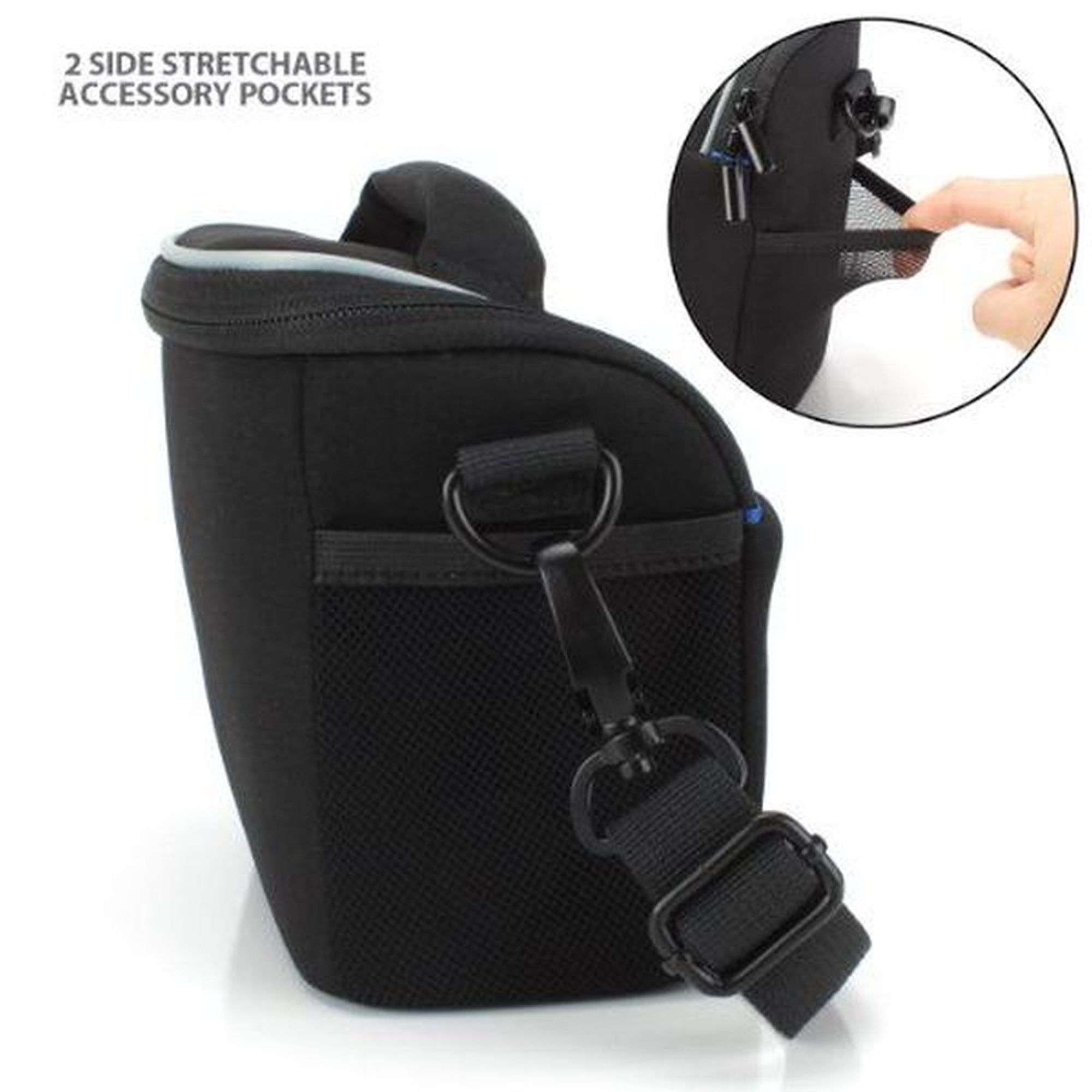 USA GEAR - Sacoche Sac Bandoulière pour Appareil photo Numérique Compact et Bridge - pour Caméras de Sport et Caméscopes Panasonic Lumix, Canon Powershot, Nikon Coolpix, Sony et Plus *VERIFIEZ LA TAILLE DE VOTRE APPAREIL* Dimensions: 139 x 120 x 95 mm SAC EN BANDOULIERE idéal pour ne jamais manquer un cliché avec pochettes multiples pour stocker vos accessoires, batteries de rechange, câbles etc... NEOPRENE RESISTANT aux intempéries et renforcé à la base. Inclus avec votre sacoche, une couverture de protection contre la pluie INTERIEUR PERSONNALISABLE pour customiser votre sacoche en fonction de votre équipement. Bandoulière d'épaule ajustable et poignet pour porter la sacoche POUR MODELES COMPACTS: compatible avec Panasonic Lumix DMC-FZ2200 , FZ21000 / Sony DSC-HX60B, DSC-HX400V/ Nikon COOLPIX B500, L340 / TecTecTec XPRO4+, Sony, Canon EOS 5D MARK III, Fujifilm FinePix S2980 et beaucoup plus! *VERIFIEZ LA TAILLE DE VOTR APPAREIL* GARANTIE 3 ANS | Dimensions: 139 x 120 x 95 mm - Description : Protection Premium : Sacoche, étui de protection compacte pour une protection supérieure dans un format mini. Extérieur en néoprène renforcé pour conserver votre appareil à l'abri des intempéries, coups et chutes. Tissu intérieur Nylex doux et résistant pour la sécurité de votre matériel. Pochettes additionnelles : 2 pochettes pour accessoires et pochette additionnelle à l'intérieur pour ranger vos câbles, cartes mémoires, batterie de rechange. Intérieur à parois personnalisables. Conçu pour voyager : Sacoche parfaite pour les photographes à plein-temps. Professionnel ou amateur, prenez votre sacoche avec vous sur toutes vos séances de shoot photo. Equipée avec une bandoulière d'épaule détachable et ajustable ainsi qu'une poignée. Inclus avec la sacoche, une couverture contre la pluie.