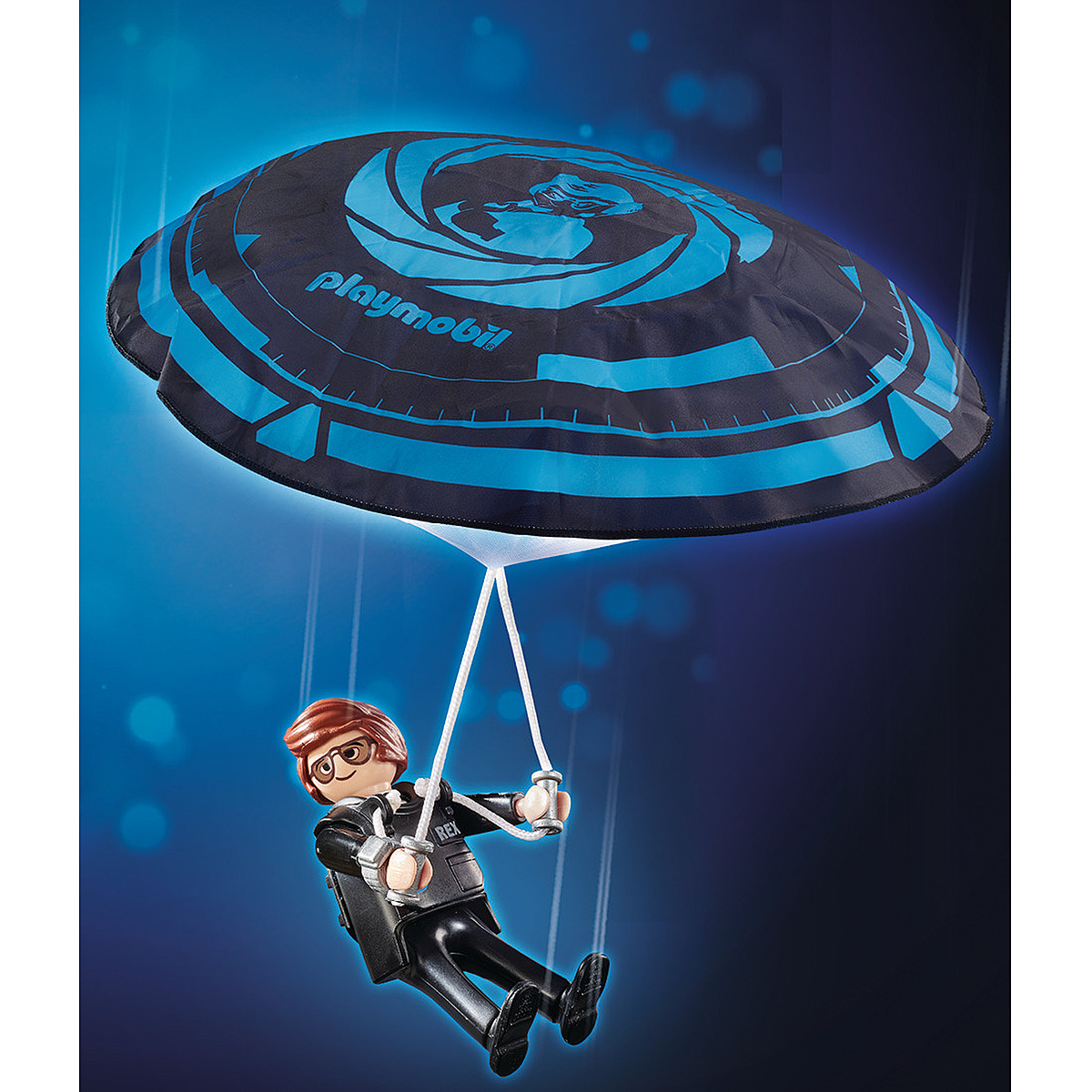 Attention en dessous ! L'intrépide Rex Dasher saute d'un avion avec style et sans se soucier du vide grâce à son parachute. Le parachute redescend doucement vers le sol lorsqu'il est lancé dans les airs. Diamètre Parachute : 48cm