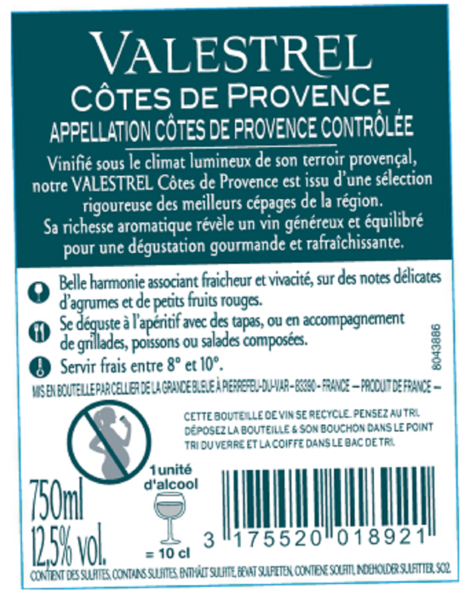 | Libellé | Valestrel, 2023 - Côtes de Provence AOP - Rosé - 75 cl |