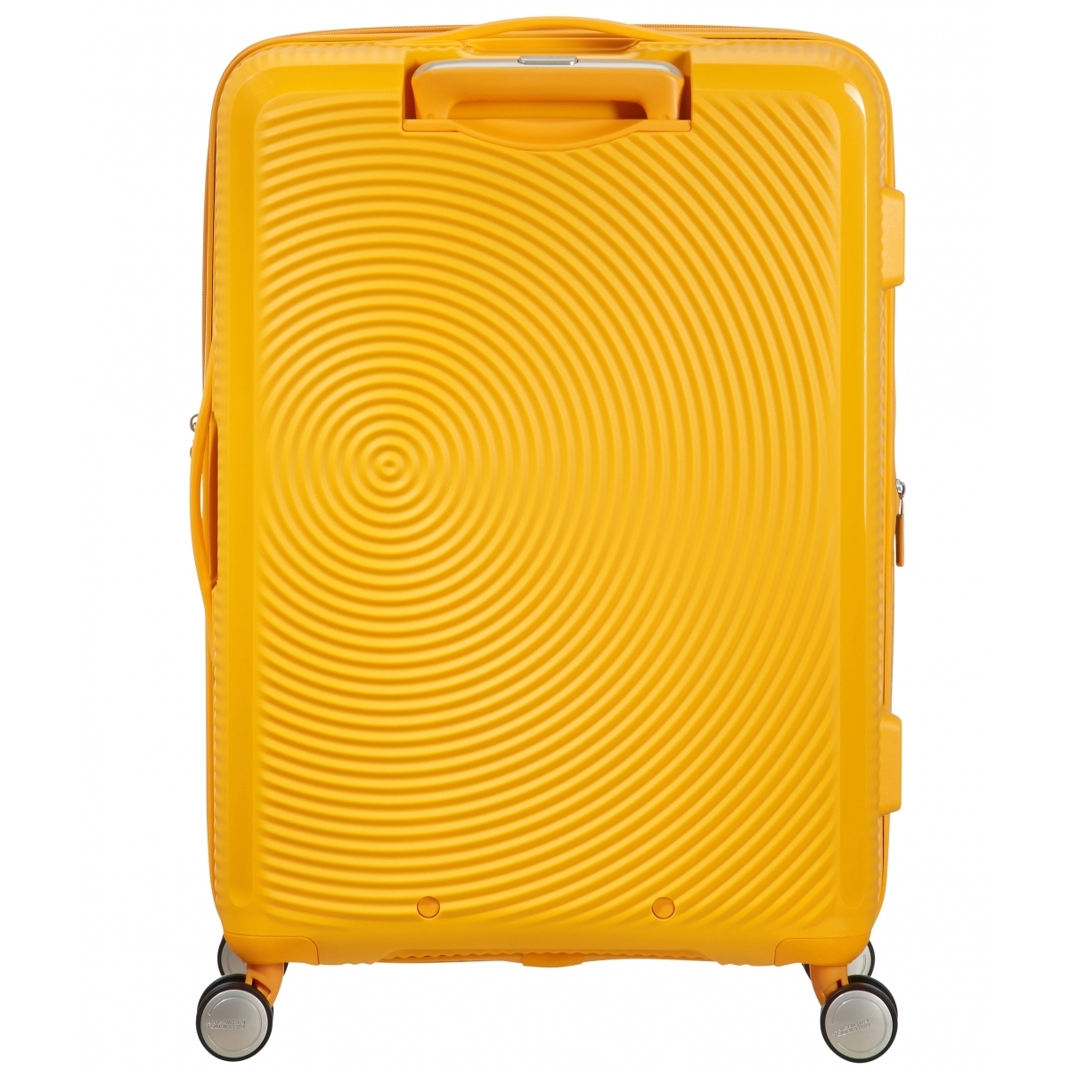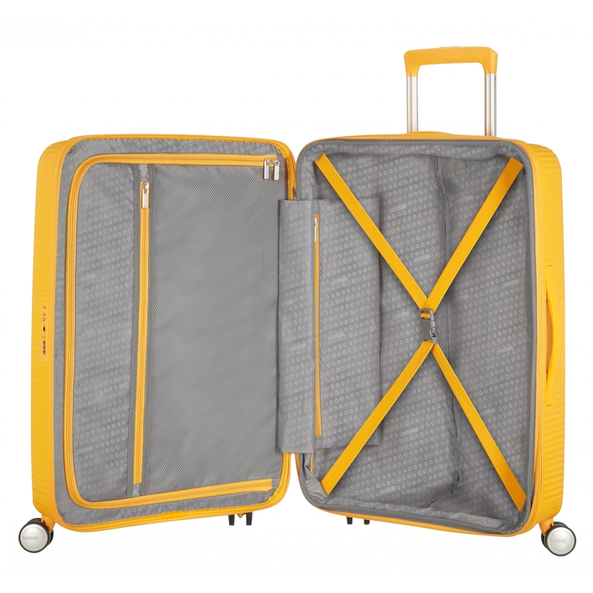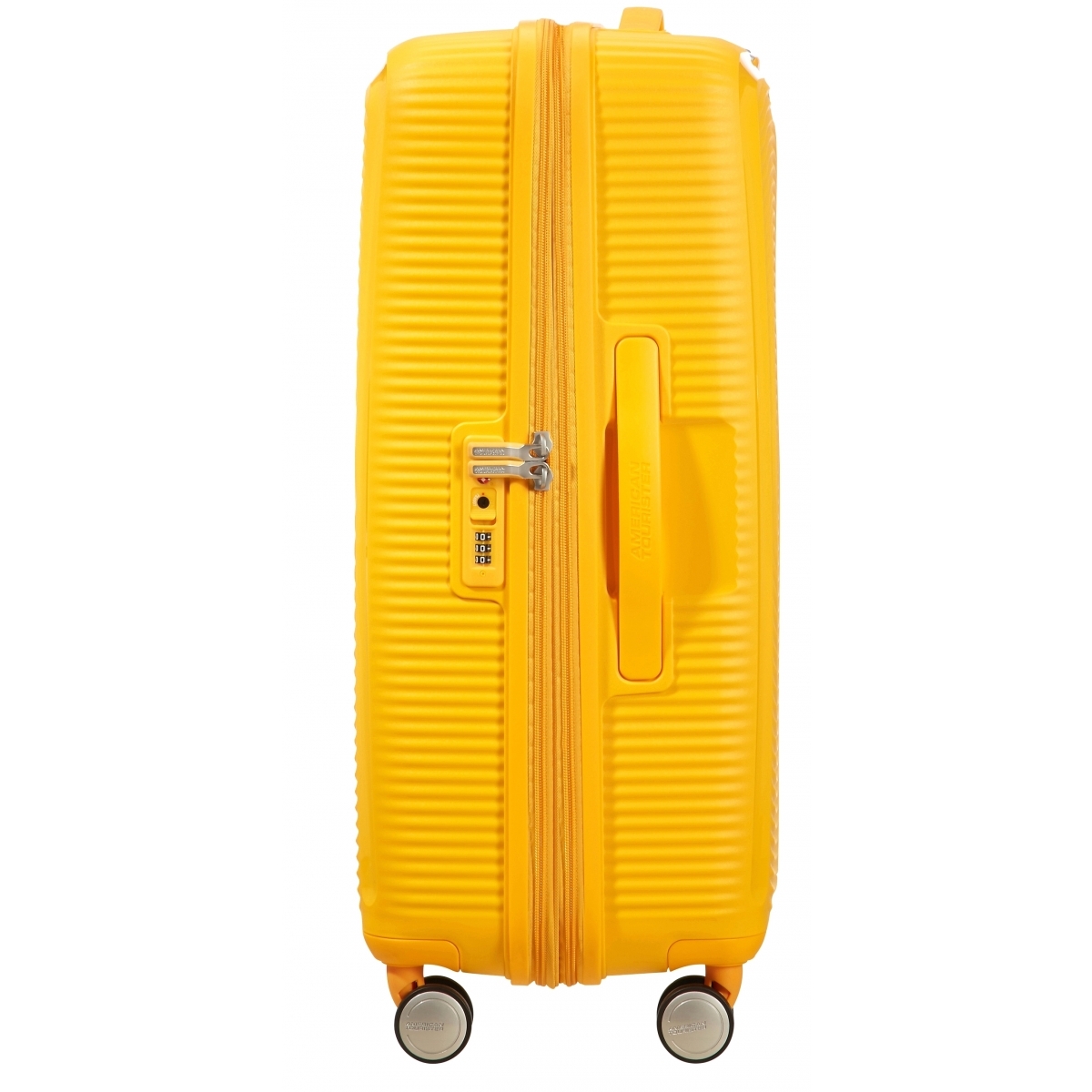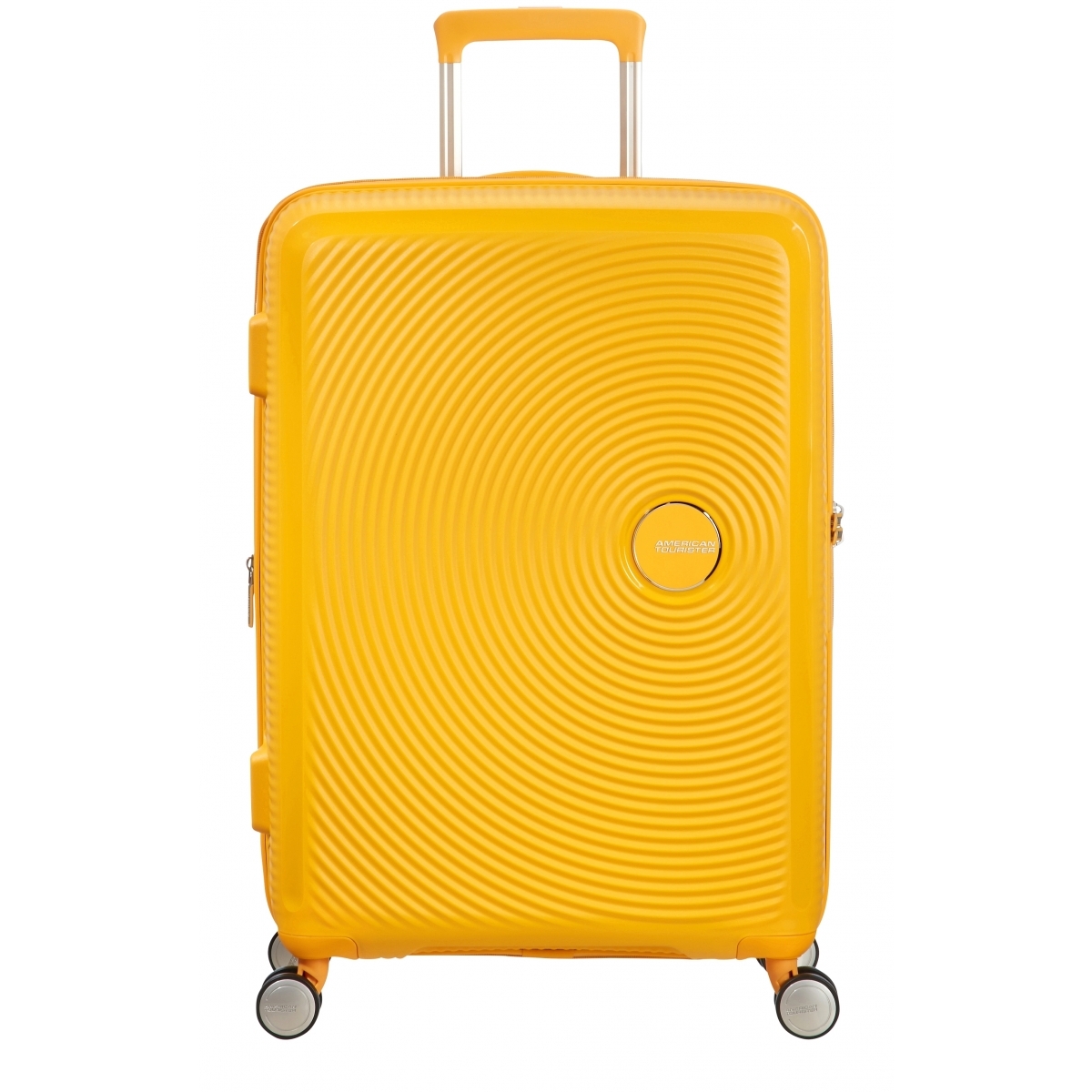 Détails extérieurs : 1 poignée pour un port horizontal, 1 poignée pour un port vertical, Canne de traction télescopique, 4 roues multidirectionnelles, 1 soufflet d'extension permettant un volume jusqu'à 81L, 4 picots de protection sur le coté de la valise, Serrure à combinaison TSA recommandée pour voyager vers les USA, Siglé AMERICAN TOURISTER. REMARQUES : Dimensions (cm) de la valises avec extension : 67 x 46.5 x 32 cm (comprenant poignées, roulettes, pieds, poches latérales et autres éléments extérieurs)