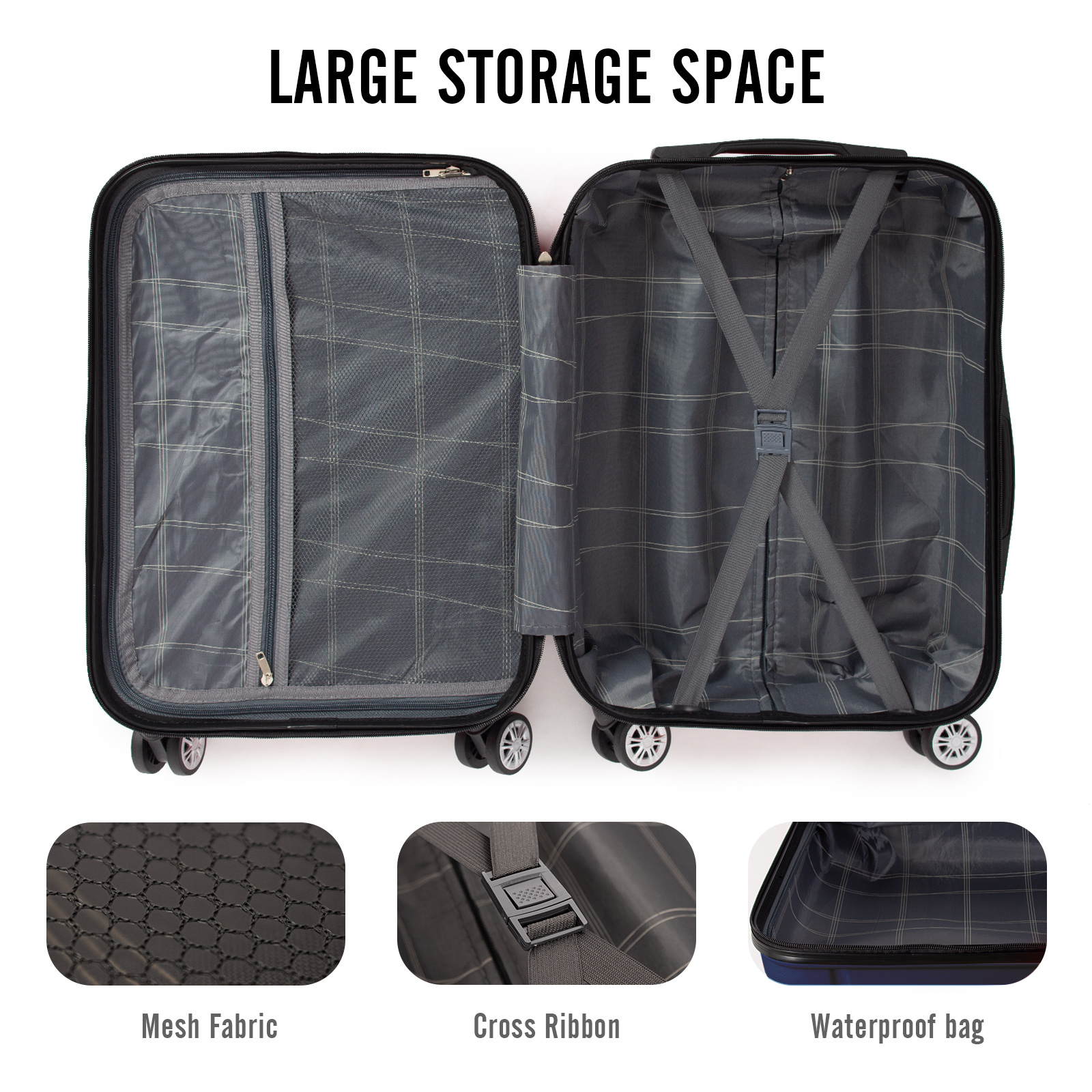 Rangement pratique - Avec sa structure légère et son grand espace de rangement, cette valise est idéale pour garder vos affaires bien organisées pendant vos voyages. Le compartiment à fermeture éclair pratique et la grande capacité de rangement garantissent que vous disposez de suffisamment d'espace pour ranger tout ce dont vous avez besoin.