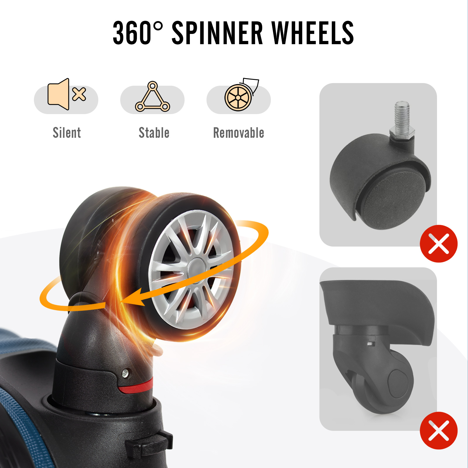 Mobilité sans effort - Cette valise est spécialement conçue pour faciliter le transport. Elle est dotée de roues pivotant à 360° et d'une construction légère. Avec 4 roues à double rangée pivotantes au lieu des roues pivotantes traditionnelles, cette valise offre plus de stabilité et d'équilibre, ce qui la rend plus facile à manœuvrer sur n'importe quel terrain.
