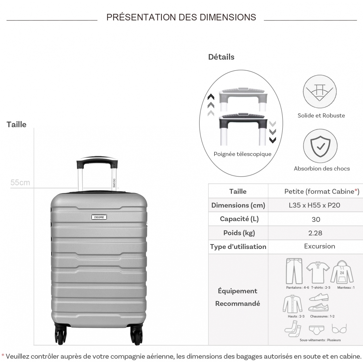 | Libellé | Valise cabine passe-partout rigide Degré ABS 55cm Abs |