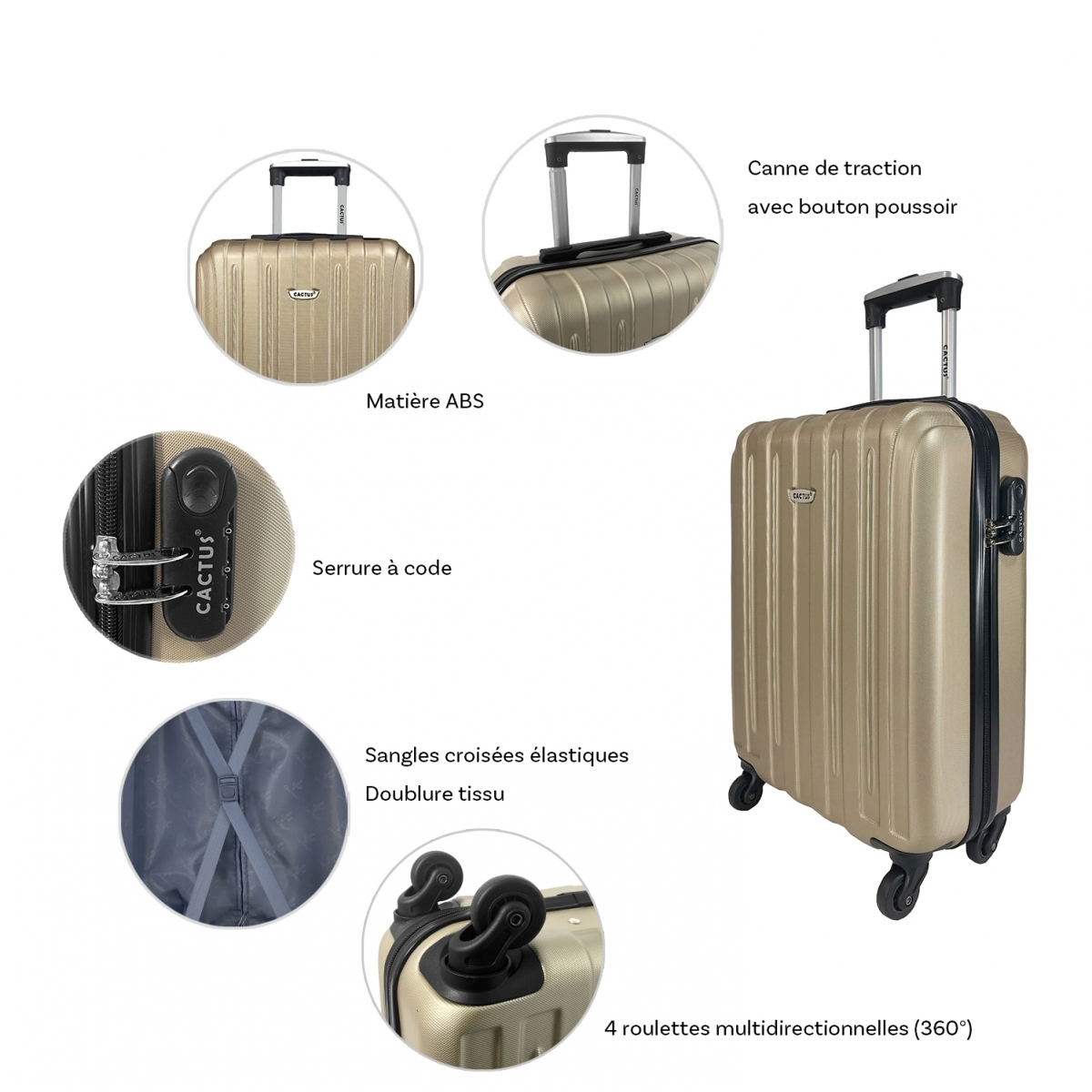 | Libellé | Valise cabine rigide Cactus ABS 55cm Abs |