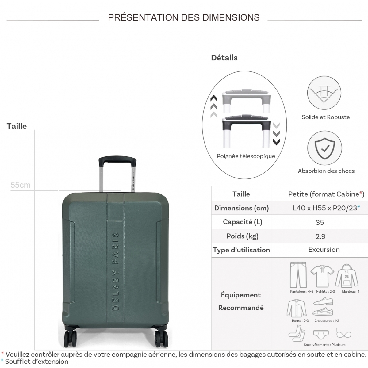 | Libellé | Valise cabine rigide Départ 55cm TSA |