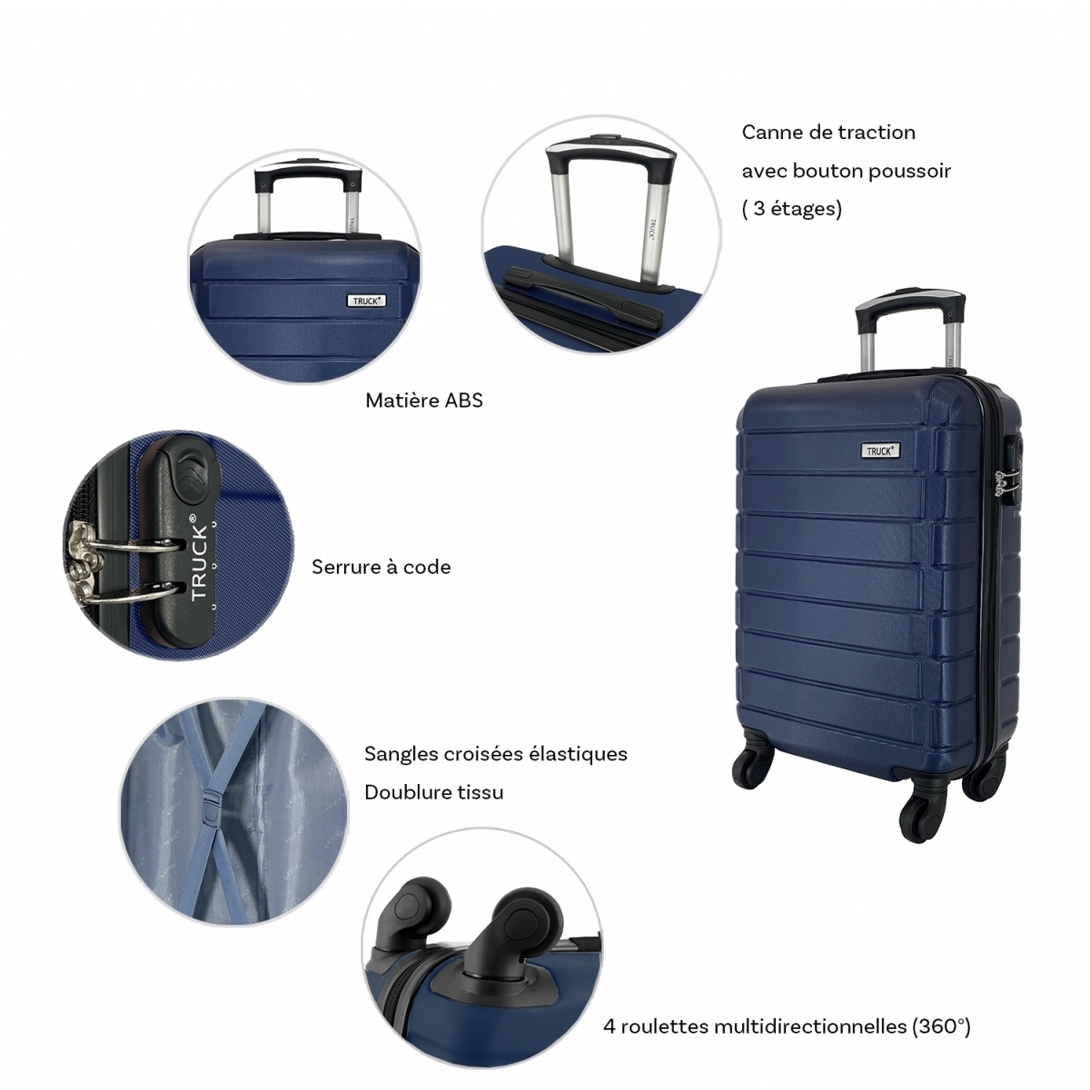 Valise cabine rigide passe-partout Truck ABS avec 4 roulettes multidirectionnelles et serrure à code - No