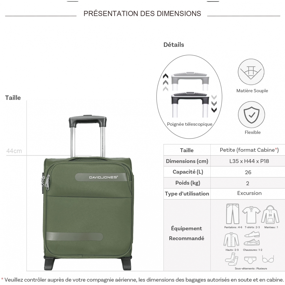 | Libellé | Valise cabine XS underseat souple 44cm |