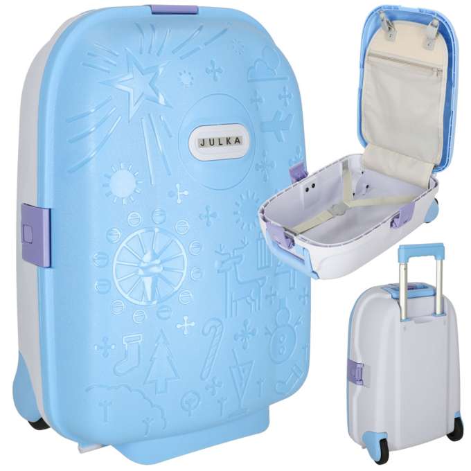 Une valise bleue à roulettes pour enfant est un accessoire idéal pour tout voyage. Il est doté d'une poignée extensible adaptée à la taille de l'enfant. Il se ferme avec deux fermoirs . À l'intérieur se trouvent des sangles de compression et une poche pour les petits objets. Spécifications techniques:Couleur : bleuMatériel: plastiqueDimensions valise : 43 cm x 30 cm x 19 cmDiamètre des roues : 7 cmHauteur de la poignée depuis le sol : 84 cmDimensions du colis : 31,5 cm x 44,5 cm x 22 cmContenu du colis:ValiseAutocollants La valise est faite de plastique durable qui survivra à de nombreux voyages ensemble.Le produit est conditionné dans une boîte en carton.