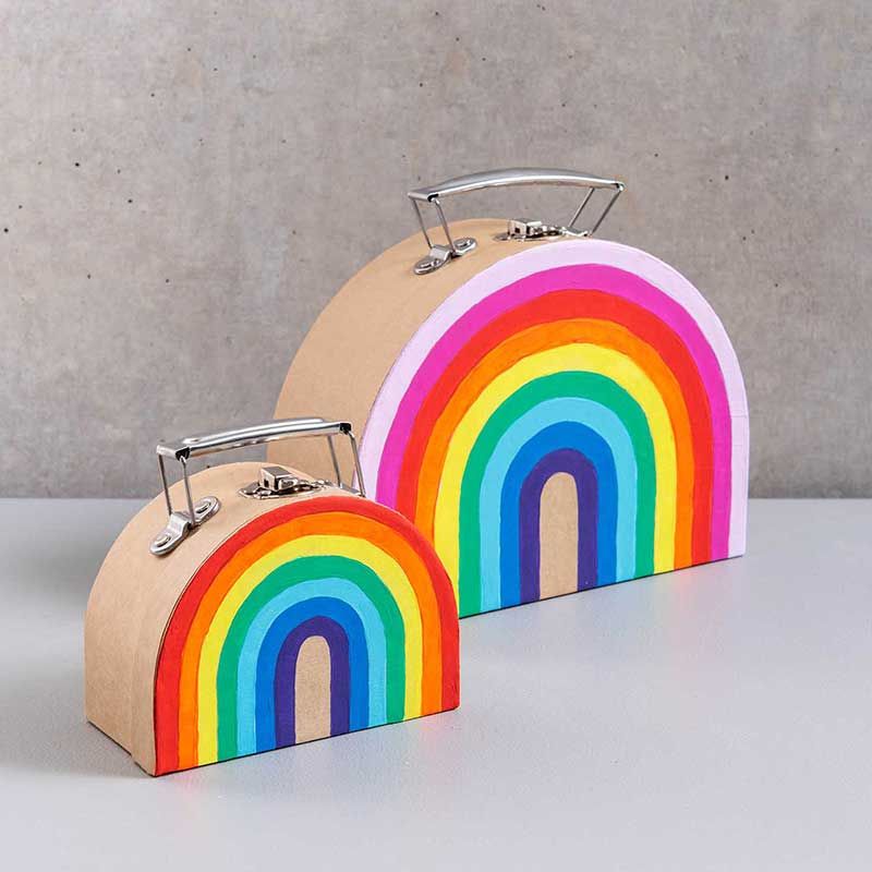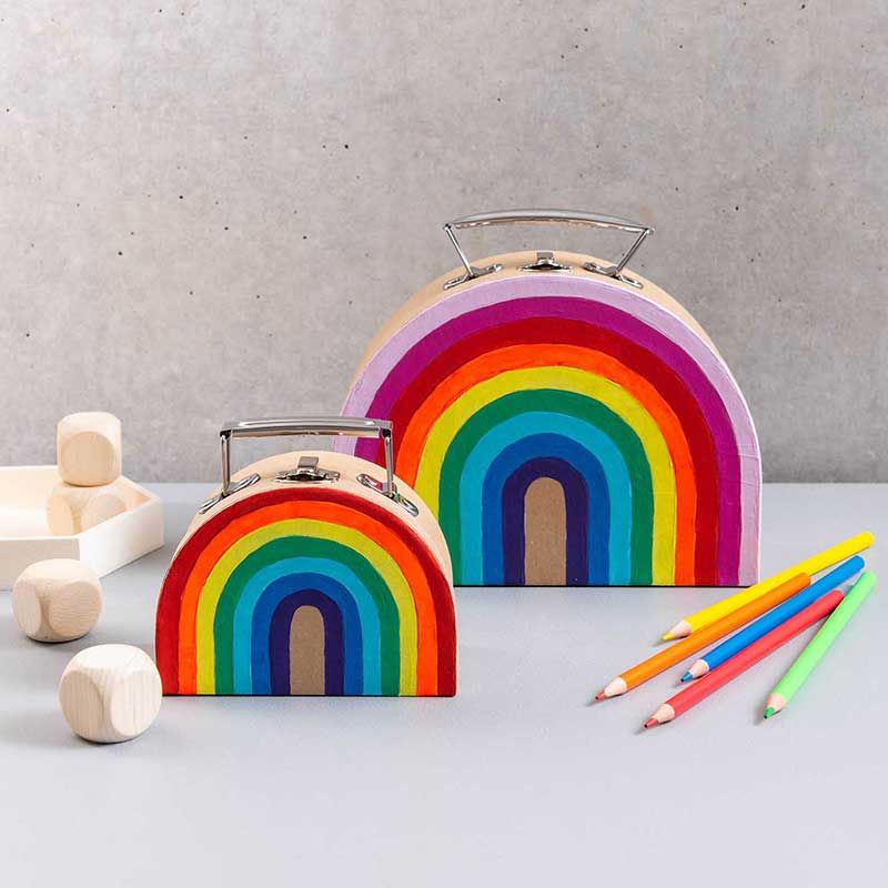 Valise en carton, semi-circulaire à customiser de la marque Rico Design. Elle pourra contenir aussi bien des souvenirs que les goûters des plus petits. Cette grande mallette est idéale pour une activité manuelle. Vous pourrez décorer votre valisette comme vous le souhaitez avec des marqueurs, des feutres, du ruban, des stickers. Amusez-vous à écrire des messages. L'idée Youdoit : soyez tendance et adoptez un thème floral avec des tampons fleurs, ou peignez vos propres motifs avec de la peinture Arc en ciel. Découvrez aussi cette même valise en version plus petite ou peinte en blanc. Cette valisette en carton mesure : 20 x 15 x 7 cm.