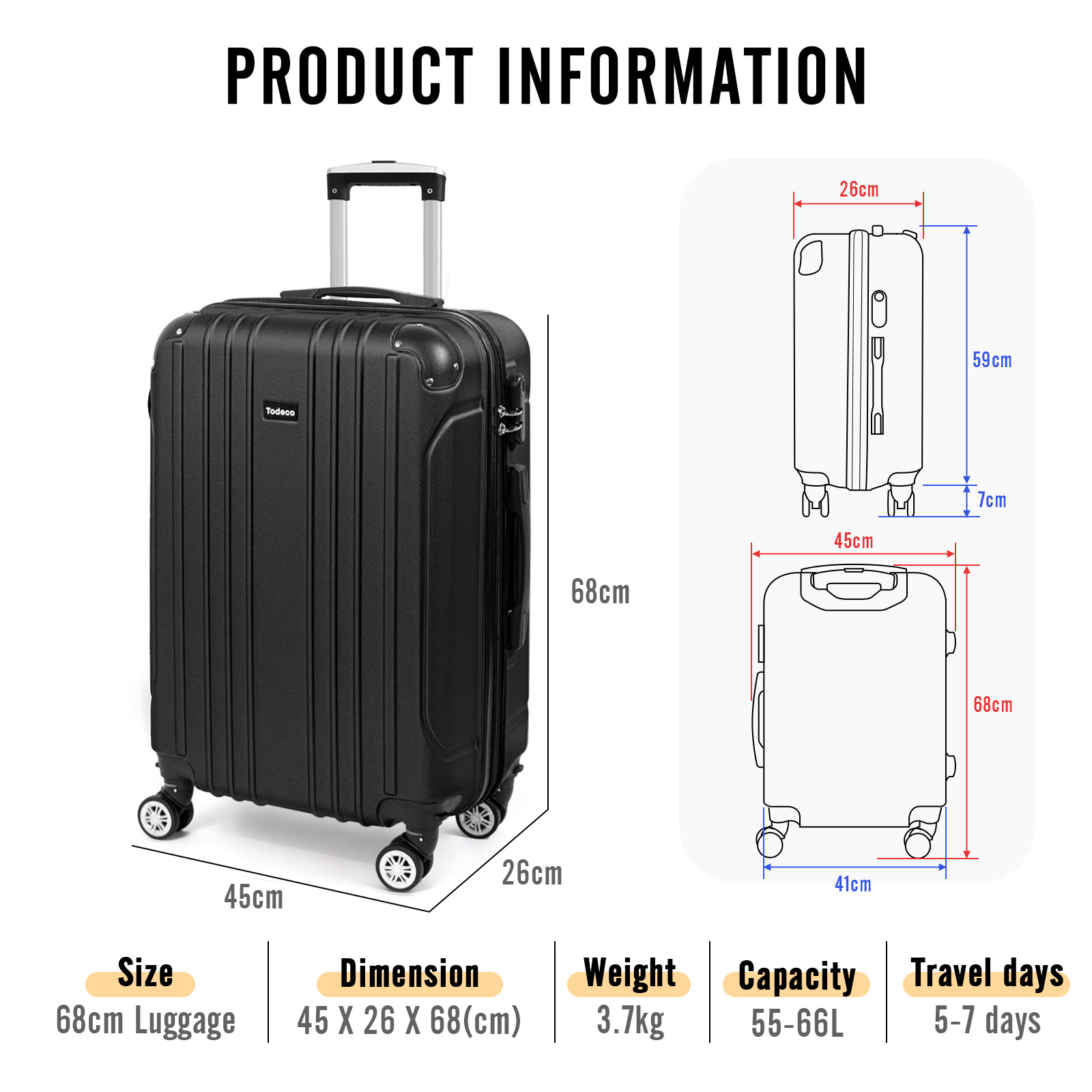 Construction robuste - Fabriquée en ABS renforcé, cette valise offre une grande durabilité et une grande capacité de stockage. Rigoureusement testée lors de sa fabrication, cette valise Todeco peut résister aux rayures et aux impacts des voyages longs et répétés.