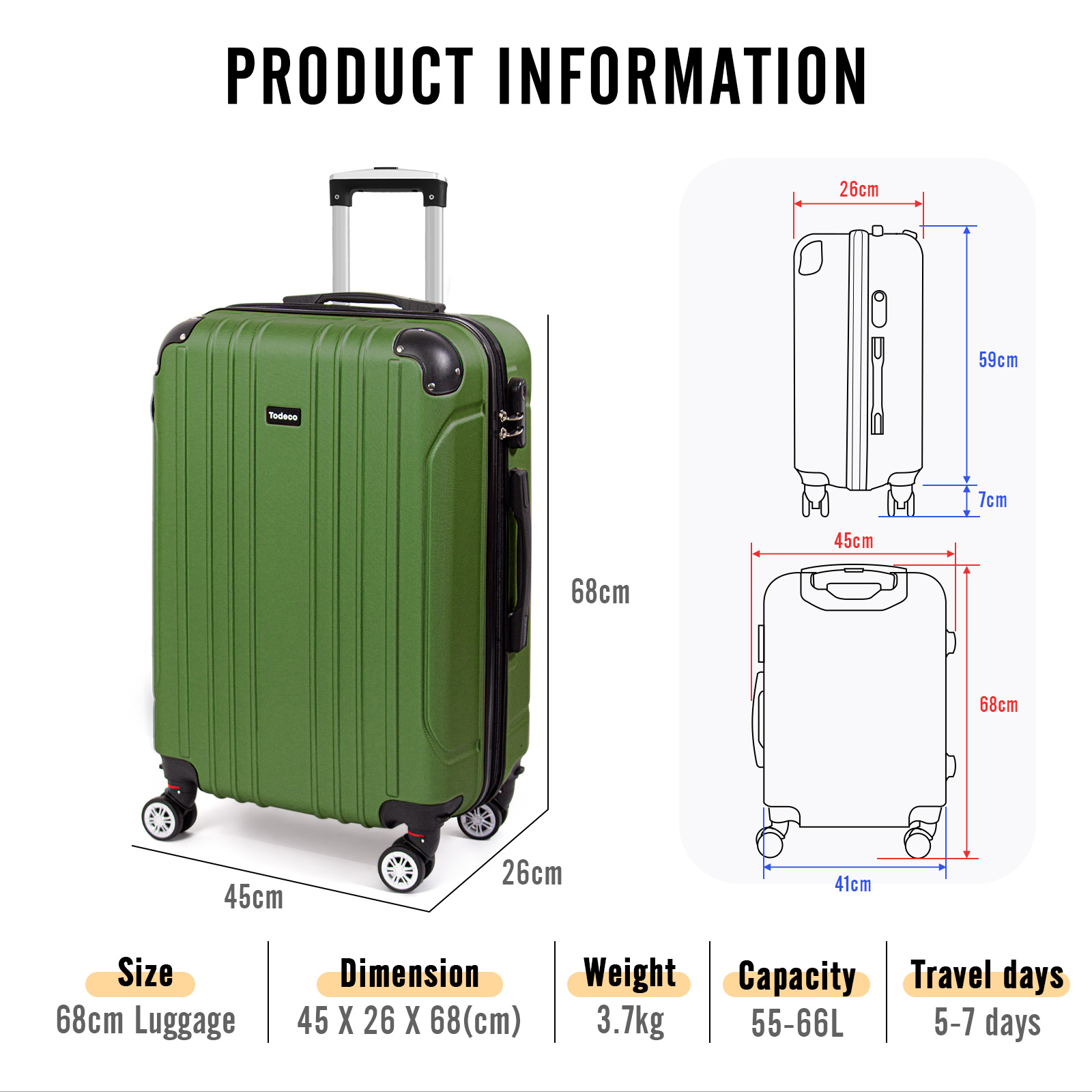| Libellé | Valise moyenne taille 68cm, valise de voyage, rigide e légère abs valise de voyage à roulettes valises, 4 doubles roues, 68x45x26cm, vert olive |