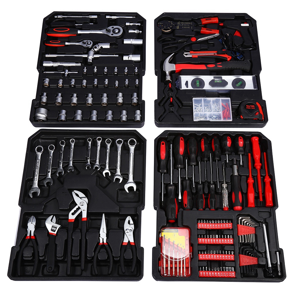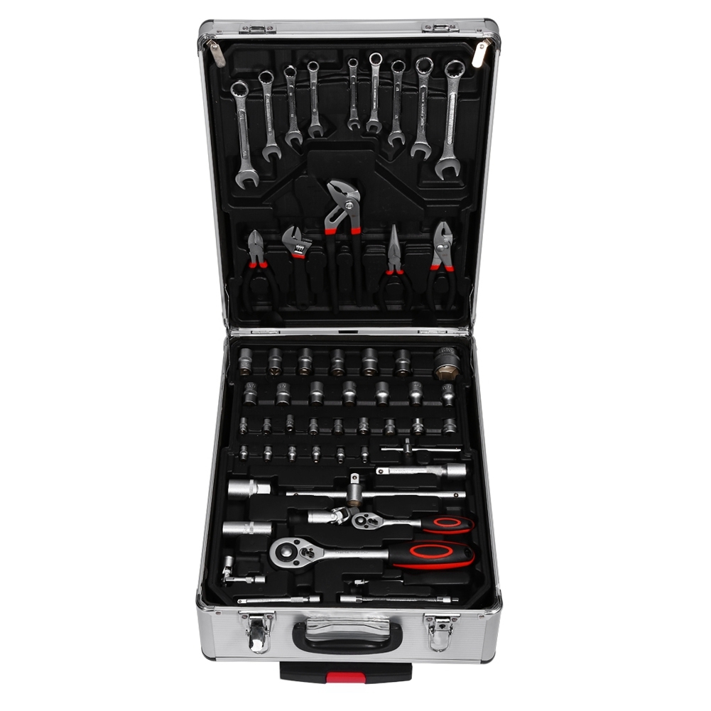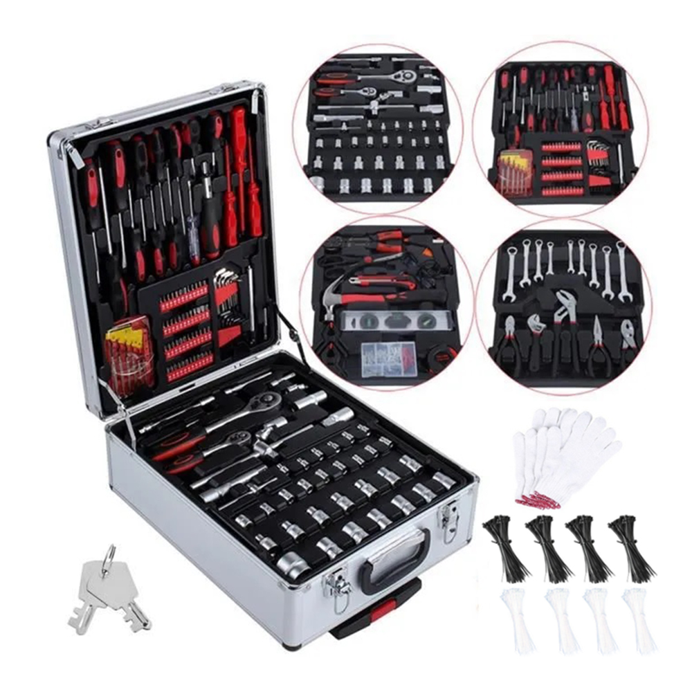 • CARACTÉRISTIQUES : ""• La mallette valise outils en aluminium 999 PCS est l'outil indispensable pour tous les bricoleurs • Ultra-complète vous pourrez utiliser jusqu'à 999 PCS (mètre, clés, tournevis, douilles, etc.) • Mallette valise outils en aluminium - Compartiments amovibles - Roulettes directionnelles • Poignée de transport rétractable - Fermeture facile par deux fermoirs à levier et une clé • Profitez d'une valise outils avec tous les indispensables, bien rangée et facile à transporter Livré dans une valise en aluminium avec 2 roulettes et des clés Plateau 1 - 9 x clés à 12 pans (6,8,10,11,12,13,14,15,17mm ) - 1 x pince à bec long - 1 x coupe-câble - 1 x clé à molette - 1 x pince pour pompe à eau - 1 x pince combinée Plateau 2 - 9 x tournevis magnétiques (5 x Philips 4 x fendus) - 2 x tournevis magnétiques courts (Philips et fendus) - 3 x tournevis isolés ( 1 x Philips 2 x fente) - 1 x tournevis de test électrique 100 - 240V - 6 x tournevis de précision (2 x Philips 4 x fente) - 48 x embouts de tournevis mixtes - 1 x jeu d'embouts 12pcs - 16 x clé Allen - 1 x tournevis à cliquet - 1 x porte-embout magnétique - 1 x tournevis plat - 1 x manomètre Plateau 3 - 15x embouts hexagonaux 1/4 : 4, 4,5 , 5 , 5,5 , 6 , 6,5 , 7 , 7,5 , 8 , 9 , 10 , 11 , 12 , 13 , 14 mm - 14 x inserts à six pans creux 1/2 : 8 , 9 , 10 , 11 , 12 , 13 , 14 , 15 , 16 , 17 , 18 , 19 , 20 , 30 mm - 2 x 1/4 Extension Barre - 2 x 1/2 Barre d'extension - 1 x 1/4 joint universel - 1 x 1/2 joint universel - 1 x barre d'extension flexible - 1 x barre en T coulissante 1/4 - 1 x barre en T coulissante 1/2 - 2 x 1/2 douille de bougie, 16 mm et 21 mm - 1 x 1/4 Poignée tournante - 1 x poignée à cliquet 1/2 entraînement - 1 x poignée à cliquet 1/4 entraînement Plateau 4 - 1 x outil de sertissage de cosse (sertissage outil) - 1 x ciseaux - 1 x ruban isolant - 1 x marteau à griffes - 1 x pistolet à colle (y compris 2 cartouches de colle chaude) - 1 x règle à niveau - 2 x pince plastique - 1 x 144pcs Assortiment de matériel (clous, vis, crochets, etc.) - 1 x mètre à mesurer de 5m - 1 x dénudeur de fil - 1 X cutter 2 x paires de gants 4 x paquet de 100 serre-câbles en nylon Blanc 4 x paquet de 100 serre-câbles en nylon Noir - Poids net: environ 12,5 kg""