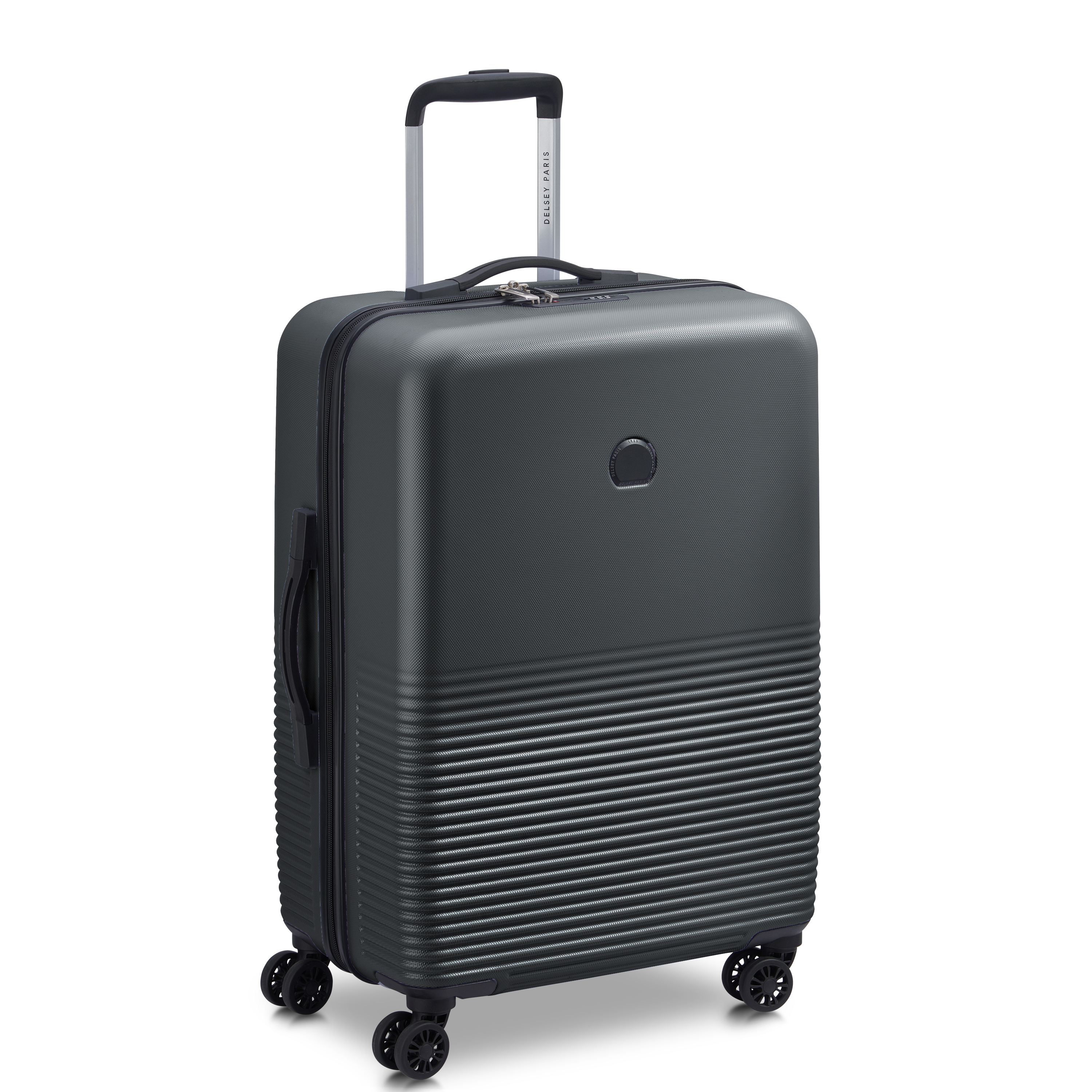 DELSEY MARINA trolley 76cm, ABS, gris, Ouverture double curseurs avec cadenas intégré à combinaison TSA, Système trolley intégré multi-positions avec bouton poussoir,Confort de roulage 360° avec 4 doubles roues multidirectionnelles, 2 poignées de portage latérale et supérieure,INTERIEUR : entièrement doublé - sangles de maintien - 1 grande poche zippée faisant office de 2nd compartiment avec poche filet plaquée zippée, Dimensions 76x50x32 cm-4,47 kg - 121,6 L