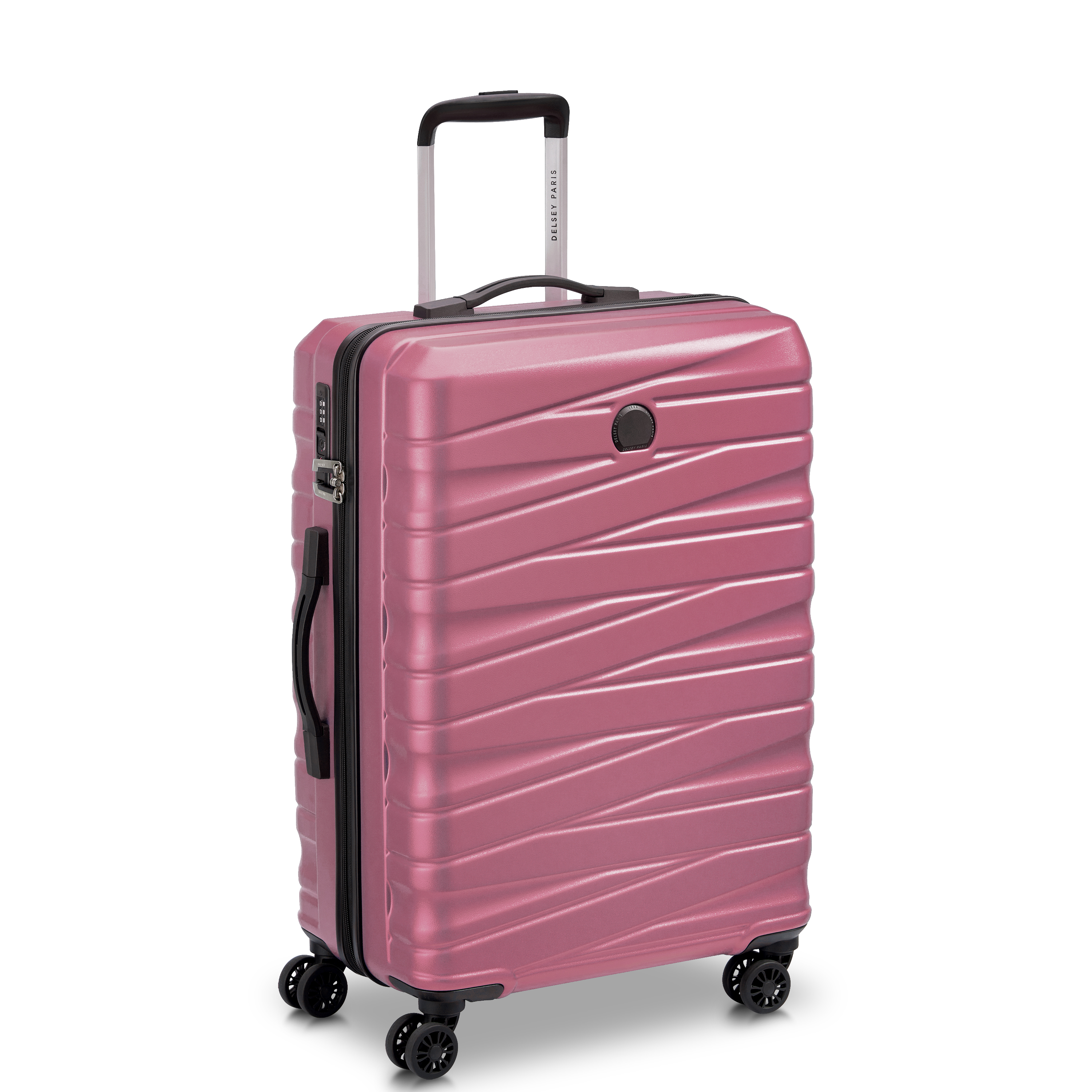 DELSEY TIPHANIE trolley 76cm, ABS, rose, Ouverture double curseurs avec cadenas intégré à combinaison TSA ,Système trolley intégré multi-positions avec bouton poussoir ,Confort de roulage 360° avec 4 doubles roues multidirectionnelles, 2 poignées de portage latérale et supérieure ,INTERIEUR : entièrement doublé - sangles de maintien - 1 grande poche zippée faisant office de 2nd compartiment avec poche filet plaquée zippée, Dimensions76x50x32 cm-4,6 kg -121,5 L