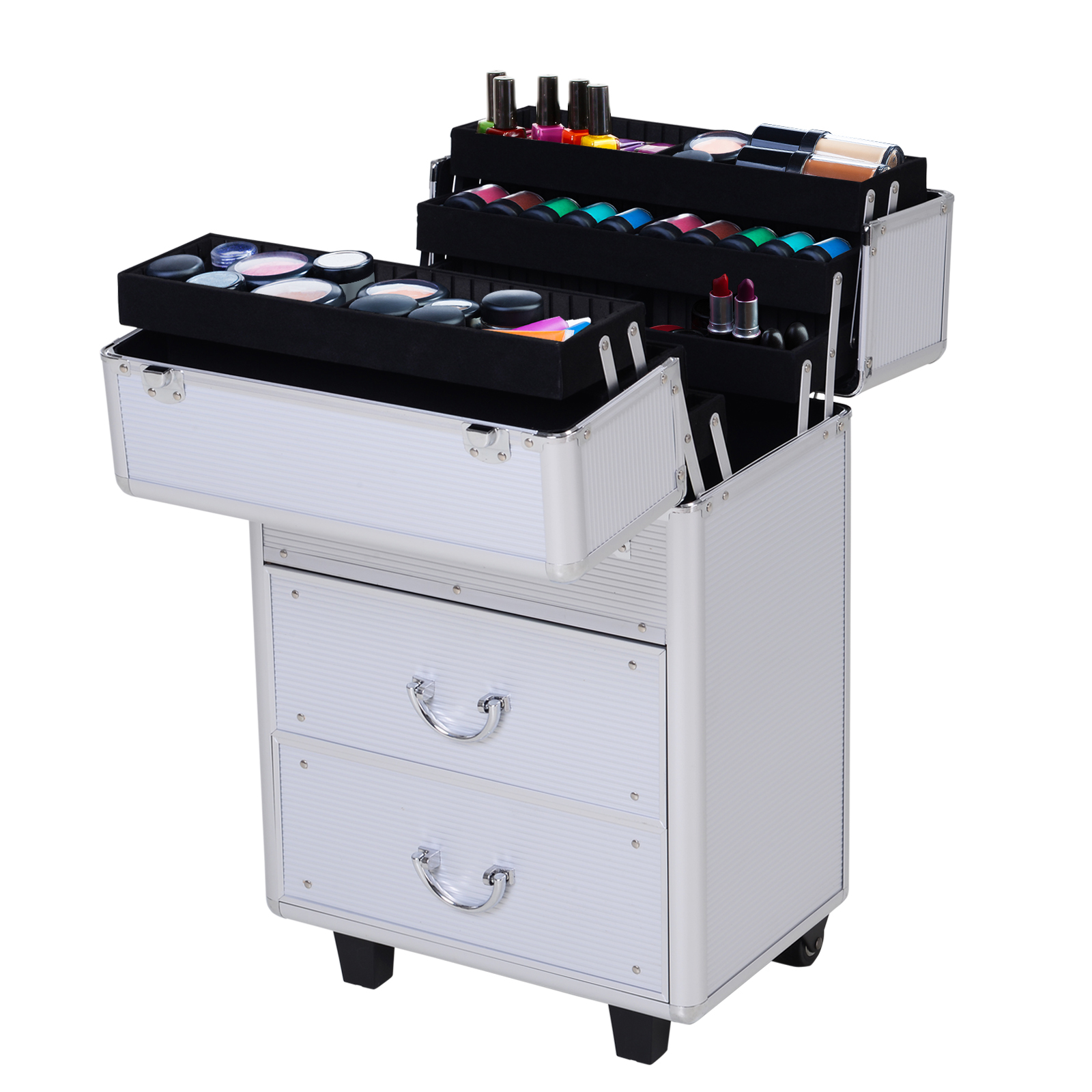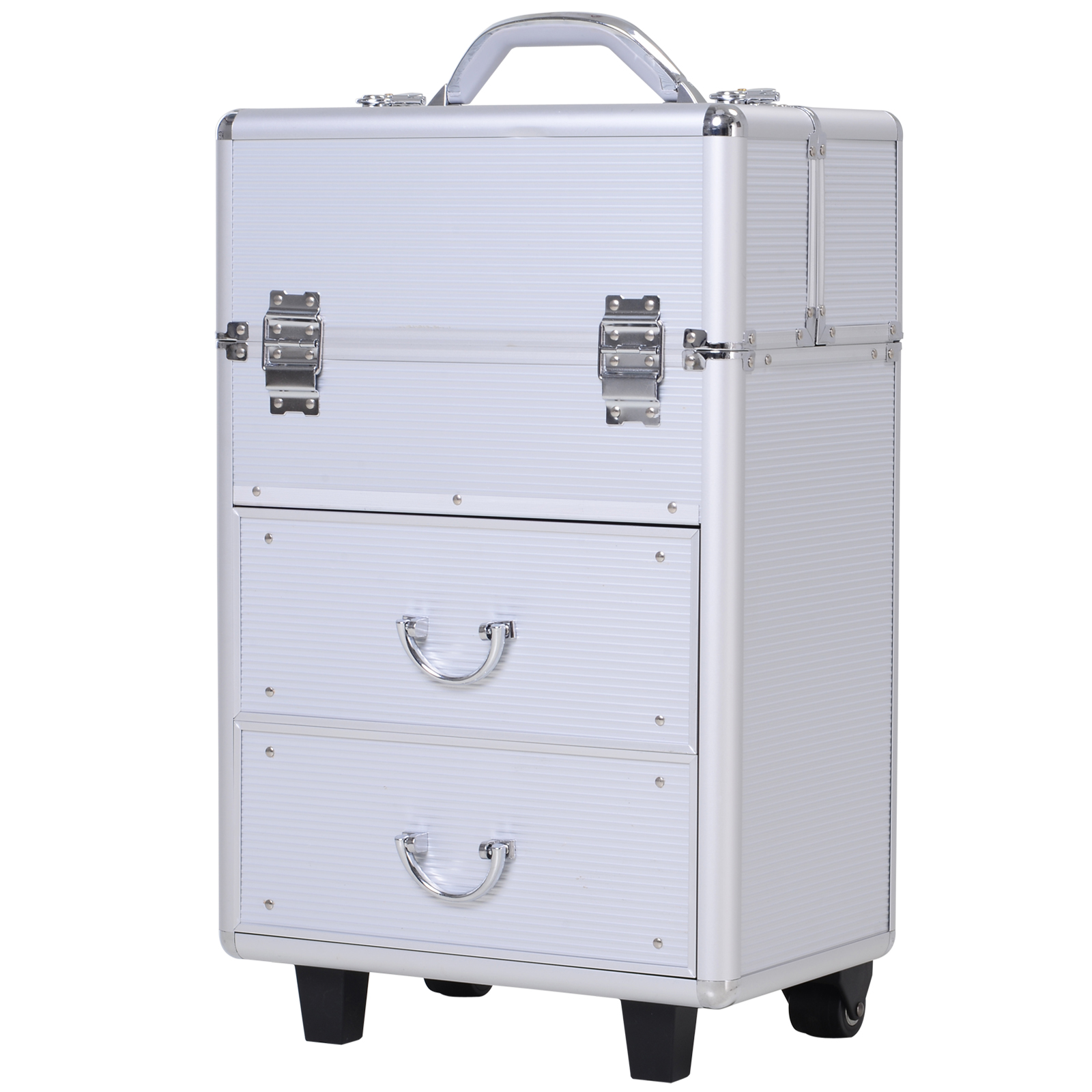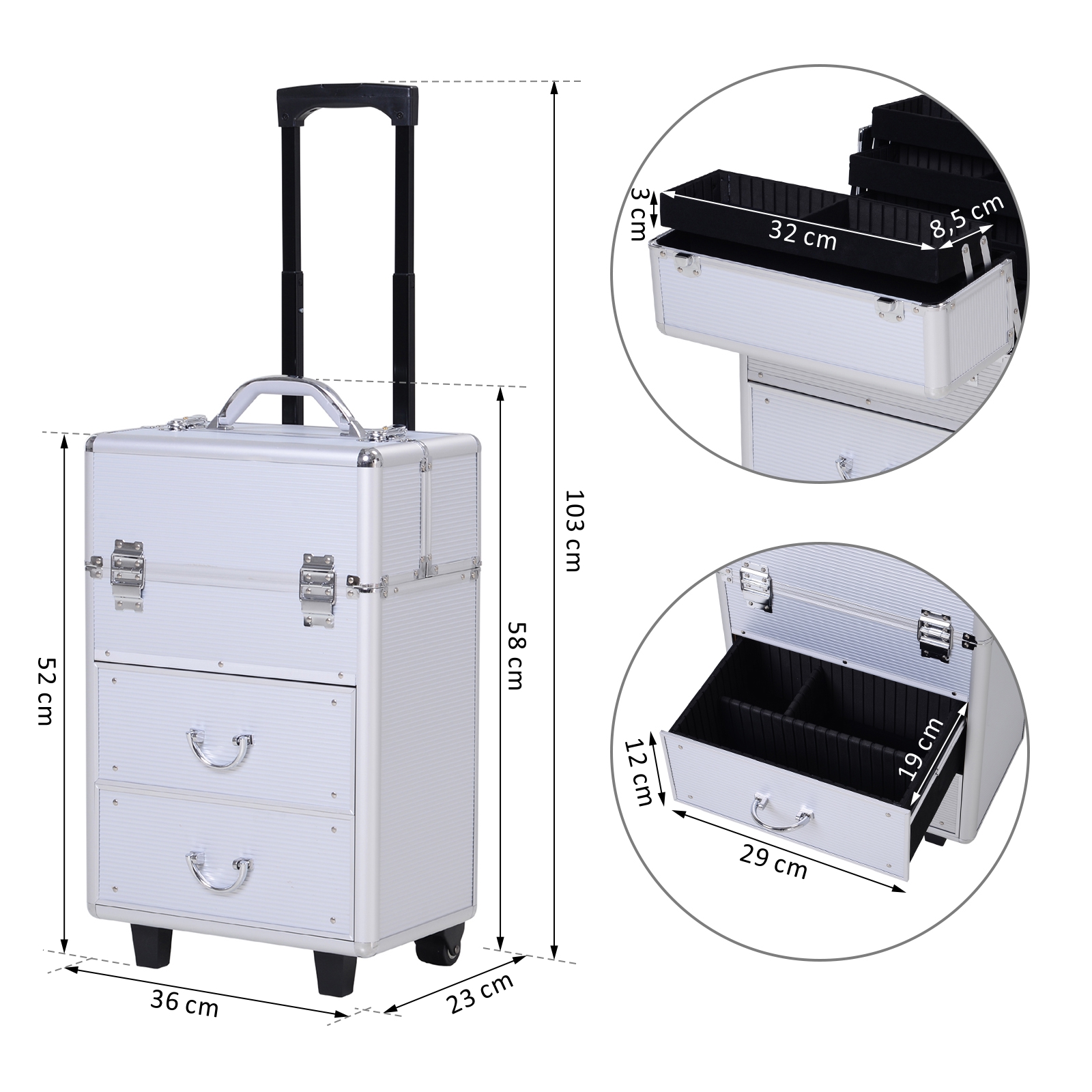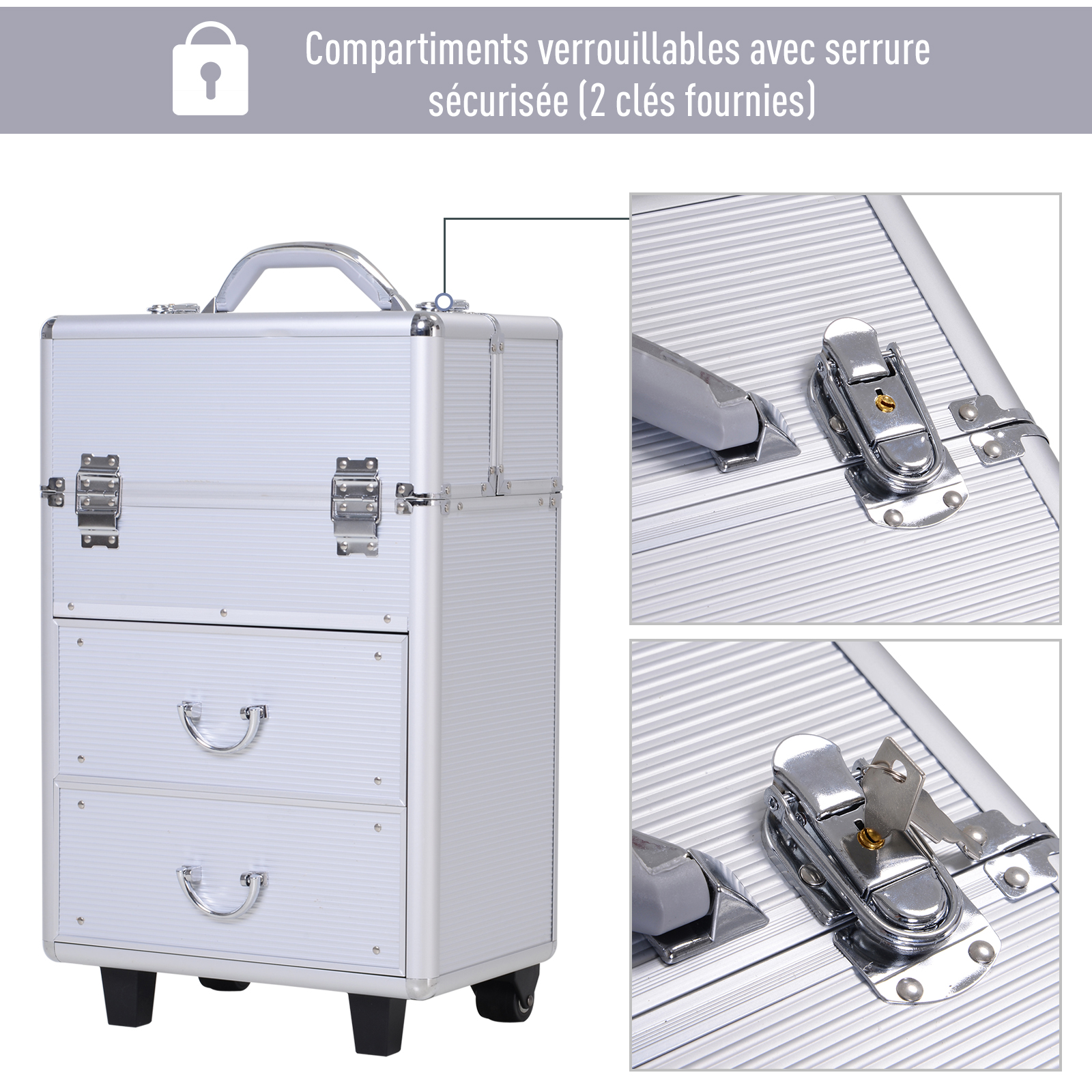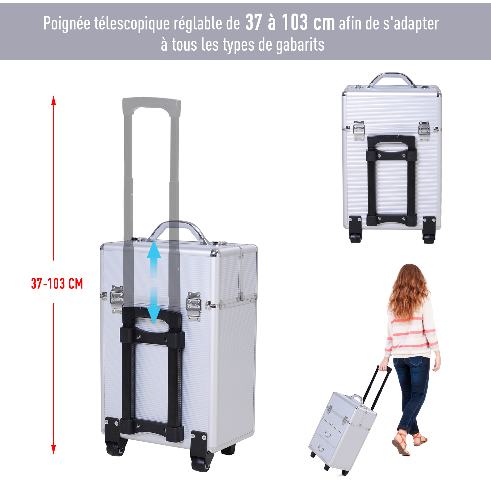 Valise trolley maquillage malette cosmétique vanity poignée télescopique réglable 36L x 23l x 58H cm alu