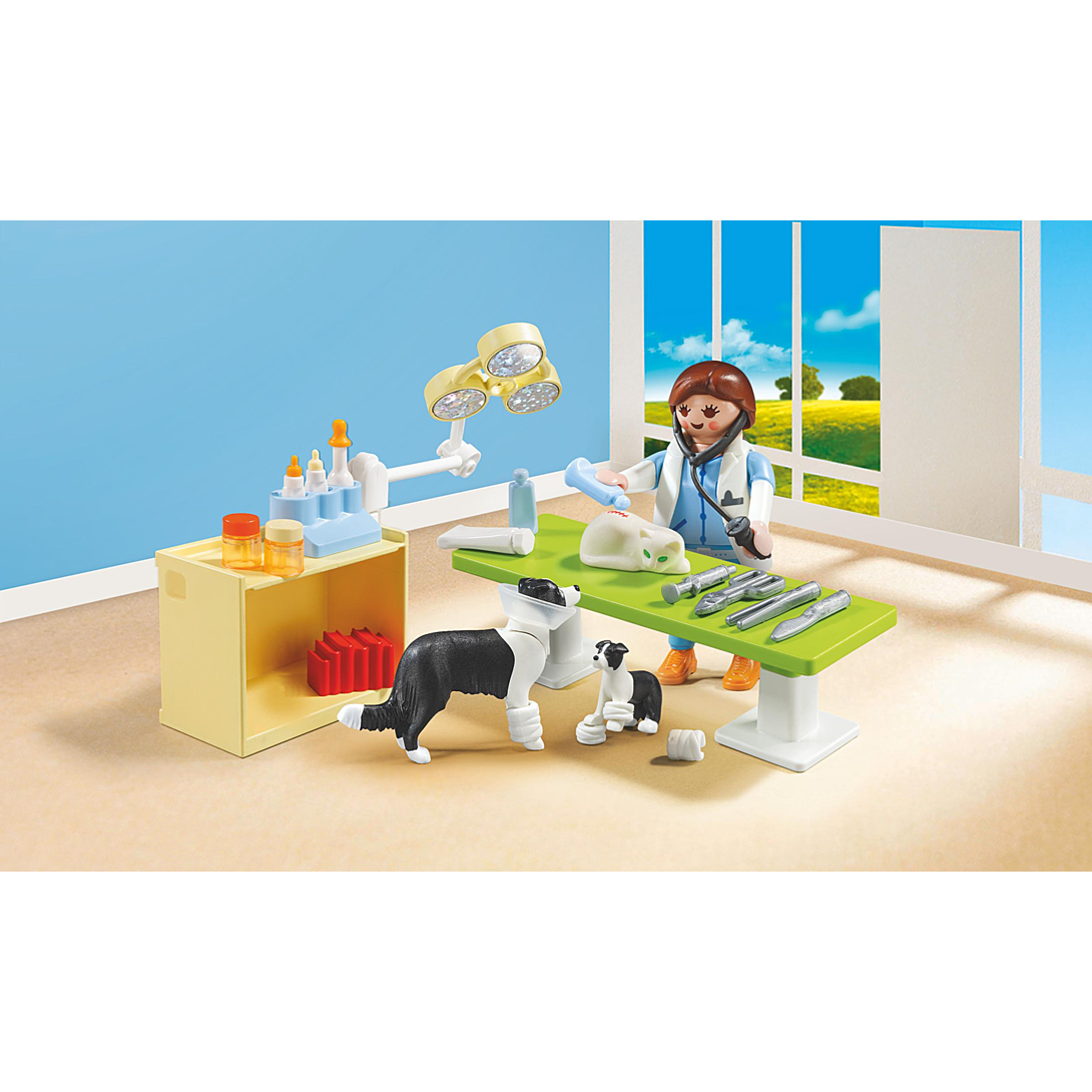Le petit chat est malade, la vétérinaire l'ausculte pour déterminer ce qui ne va pas. La maman chien et son chiot s’inquiètent en entendant les miaulements du chat et viennent le voir pour le réconforter. Le cabinet comprend tous les équipements et le matériel pour soigner les animaux.