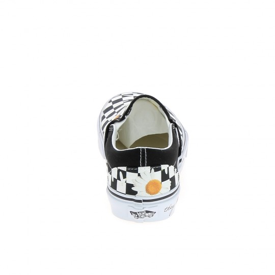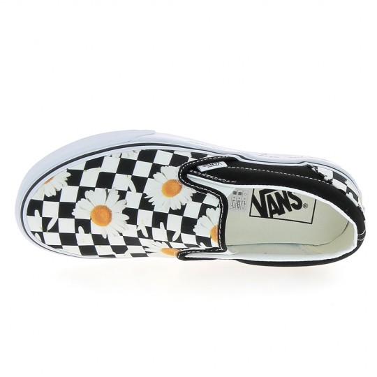 VANS CLASSIC SLIP ON pour femme, couleur damier noir et blanc à motif fleurs
