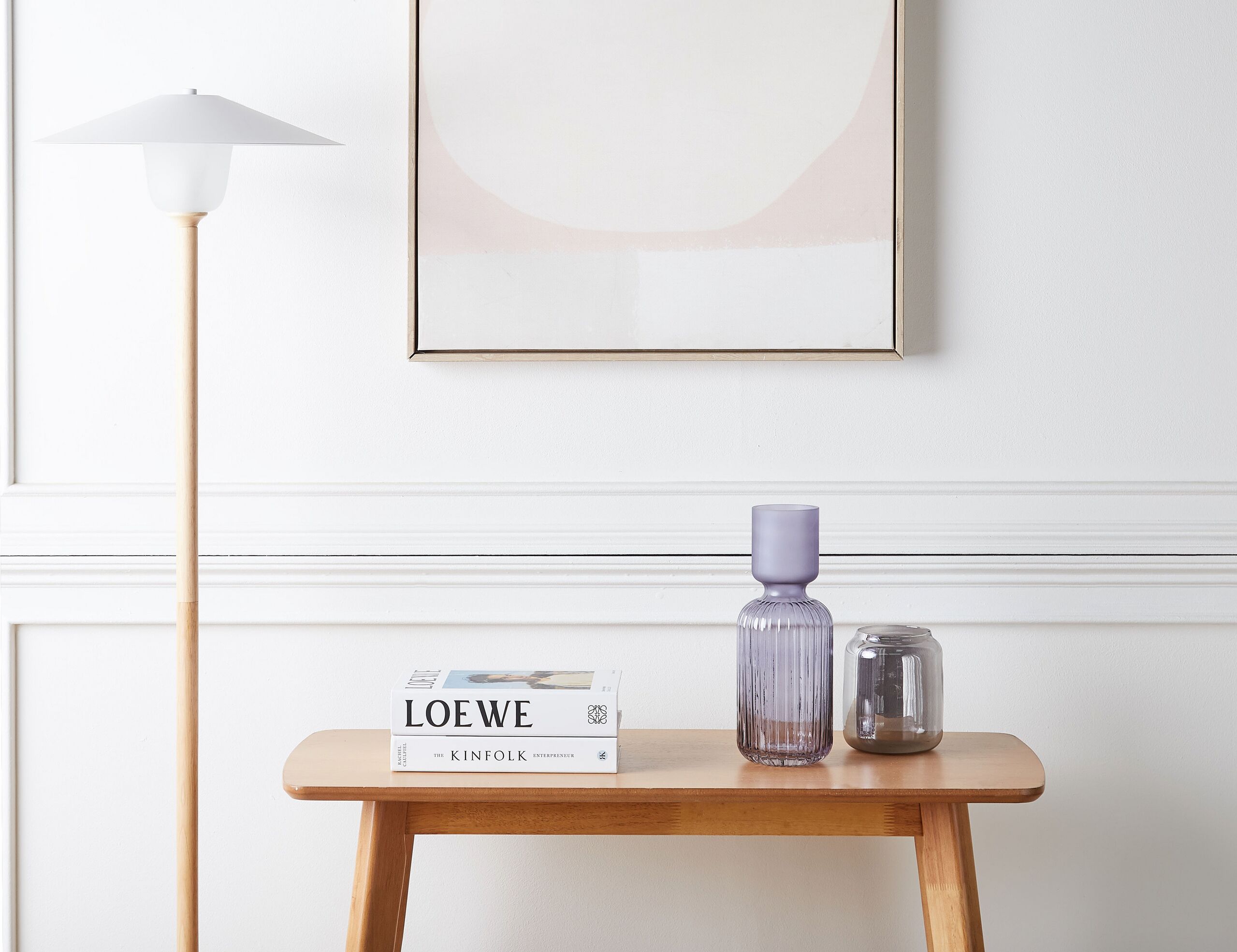 Vase décoratif mince de couleur lavande. Ajoutez une touche unique à votre decoration intérieure avec un vase au style unique qui ne manquera pas d'attirer l'attention de vos invités. Fabriqué en verre durable et de haute qualité, il s'adaptera parfaitement à tout style d'intérieur. Idéal pour être placé sur une table ou un buffet, vous pouvez enfin compléter le look avec un bouquet de fleurs fraîches ou séchées.