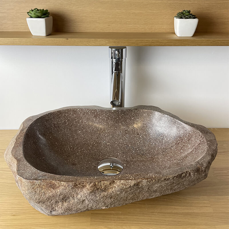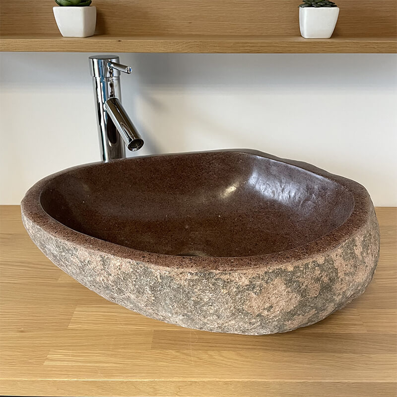 | Libellé | Vasque à Poser - 40 cm - Pierre de Rivière - Marron avec Nuances Rouge - RACOTTA |